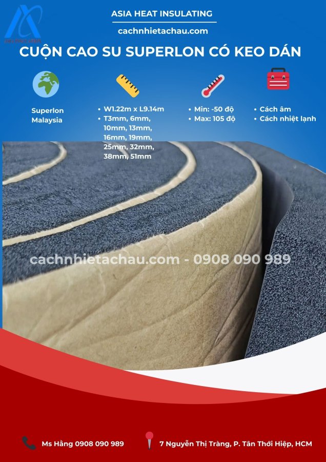 CUỘN CAO SU LƯU HÓA SUPERLON TRÁNG LỚP KEO MỎNG CÁCH NHIỆT LẠNH