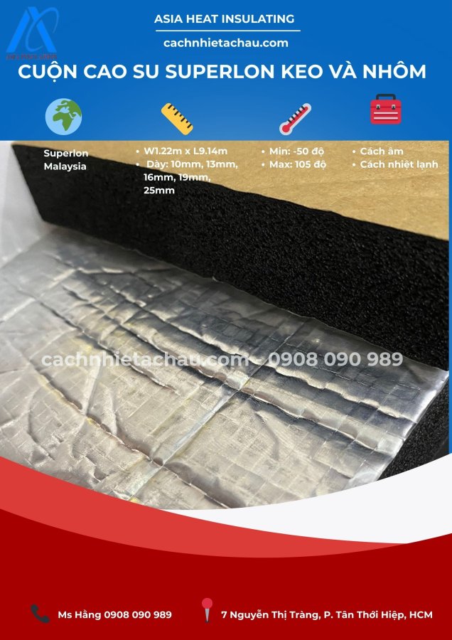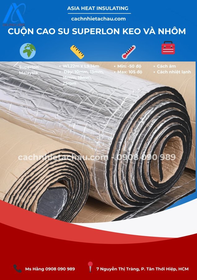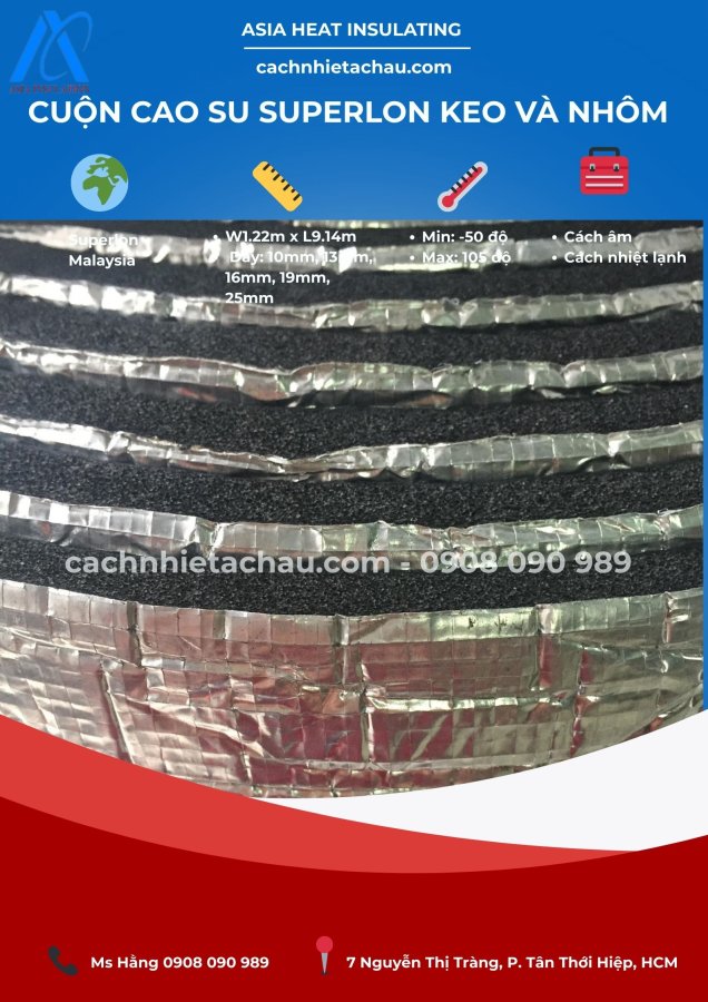 - Cuộn có 1 mặt keo và 1 mặt nhôm: Độ dày 10/13/16/19/25mm