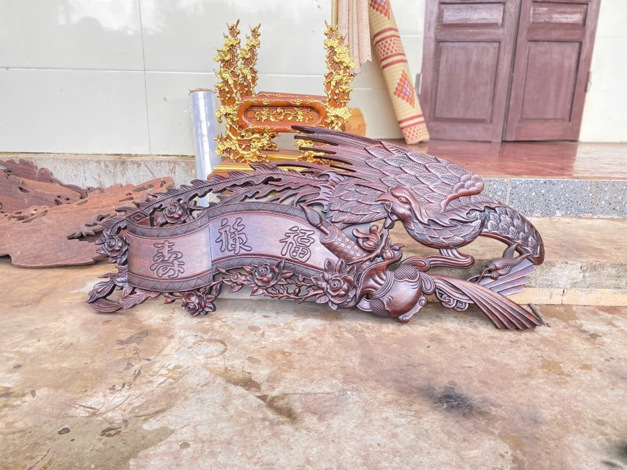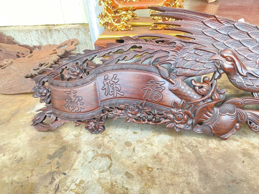 Cuốn thư phượng -Phúc Lộc Thọ Kt 107 x 45 x 3 Gỗ lim.