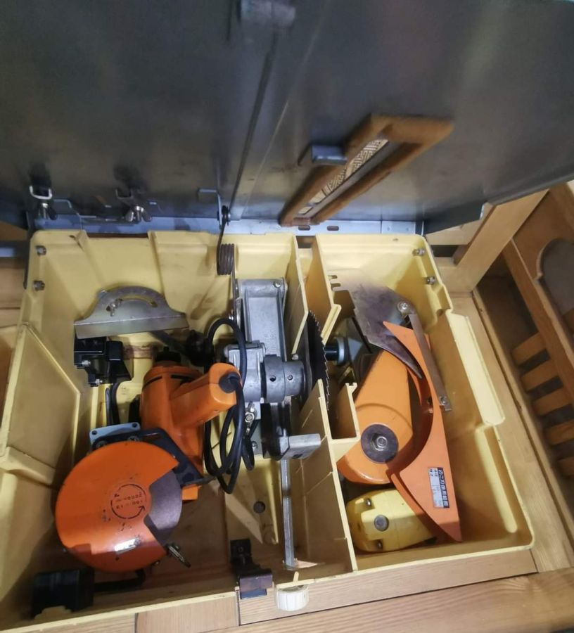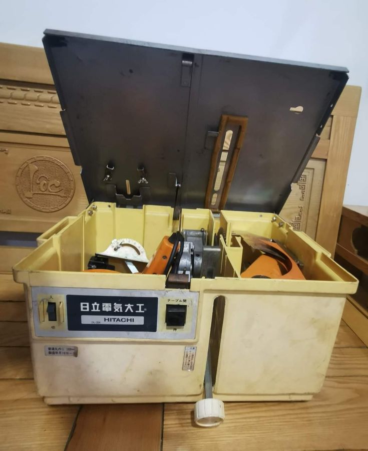 Em lên Bộ dụng cụ làm mộc đa năng Hitachi xưa 197x đầy đủ phụ kiện. Hoạt động mạnh mẽ, chuyên nghiệp, đa dụng, chính xác, an toàn. Máy zin, Điện 110V Bộ dụng cụ nặng 16kg.