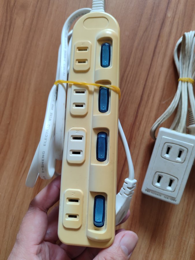2 ổ cắm điện hàng Nhật, ổ lớn có công tắc dây dài 2 mét, ổ nhỏ dài 1.5 mét, tặng kèm sới dây nguồn cắt máy. Cả 2 ổ đều dùng được điện 220V