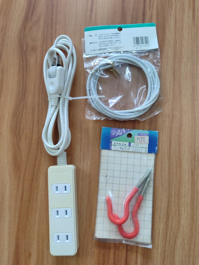 3 món đồ Nhật: Ổ cắm Elecom 4 lỗ dây dài 2 mét, dây treo rmf dài 1.8m và 2 móc treo đồ