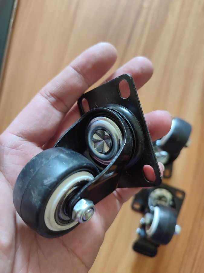 4 bánh xe hàng Nhạt, 2 bánh có khóa và 2 bánh không khóa, còn rất mới