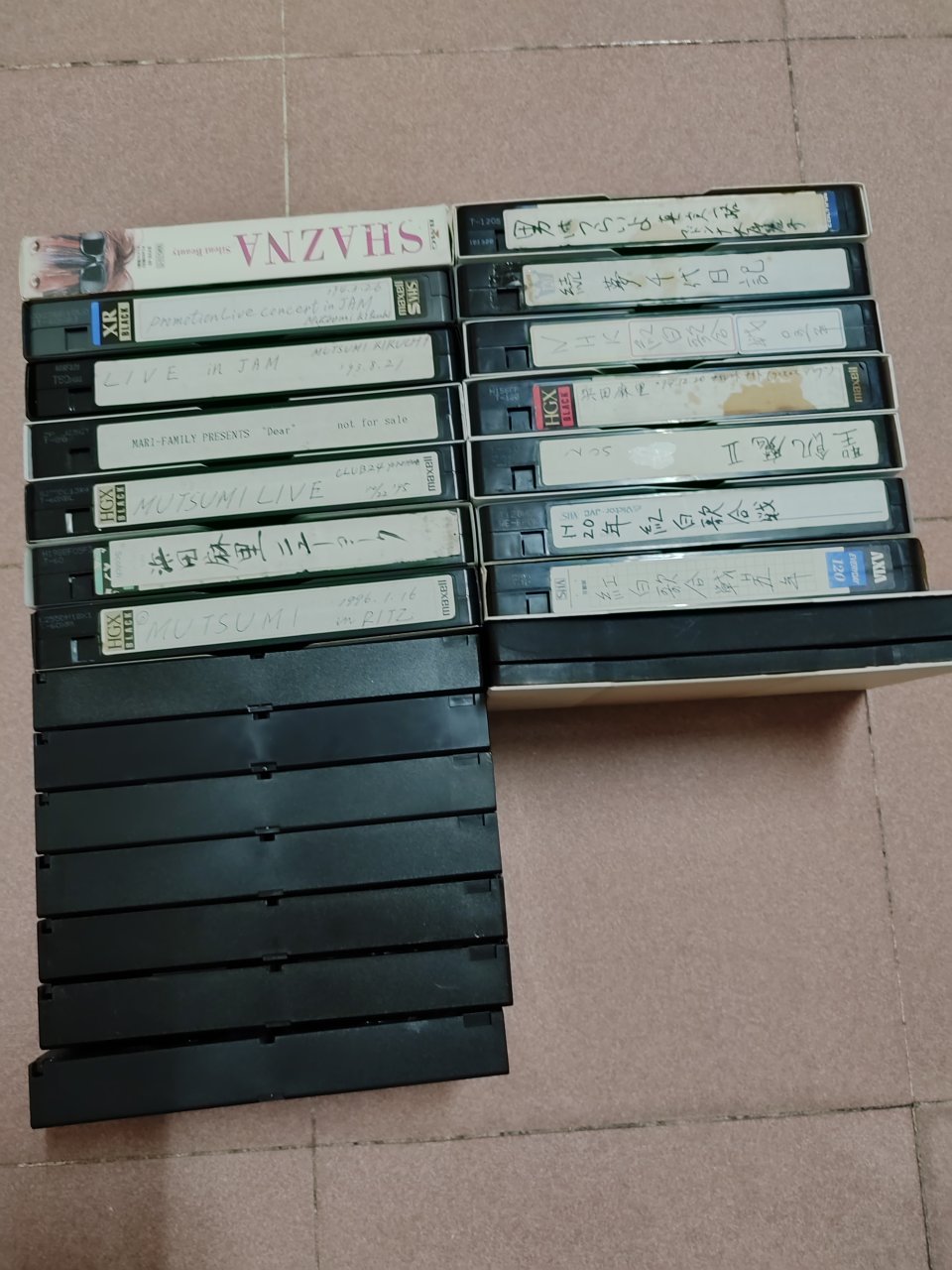 15 cuốn băng có hộp tặng kèm 7 cuốn không hộp, có 2 - 3 cuốn bị mốc, còn lại đẹp. Giá 180K cả lô, ae về tự test nhé