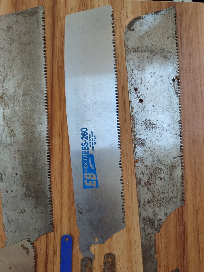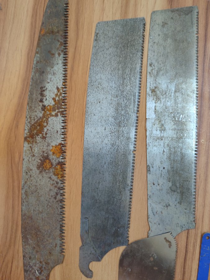 Bộ lưỡi cưa Nhật như hình, hàng chưa vệ sinh, đa số còn rất bén, có mấy cái nhỏ bị gãy chân, ae mua về ché cán lại dùng