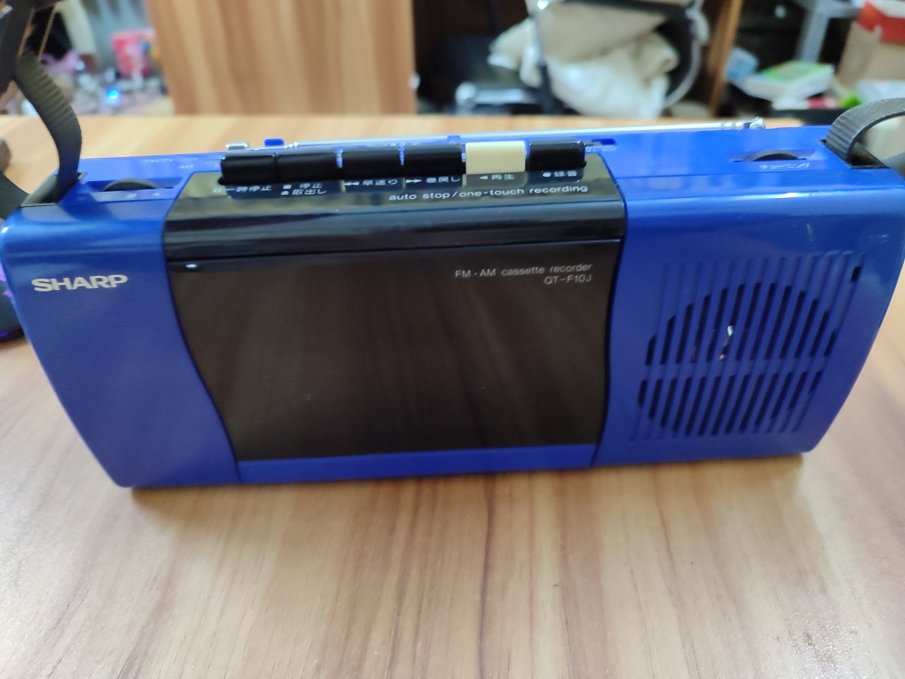 Cassette cầm tay Sharp, màu xanh hiếm gặp, hàng trưng bày sưu tầm rất đẹp.