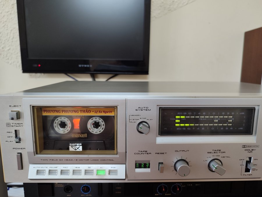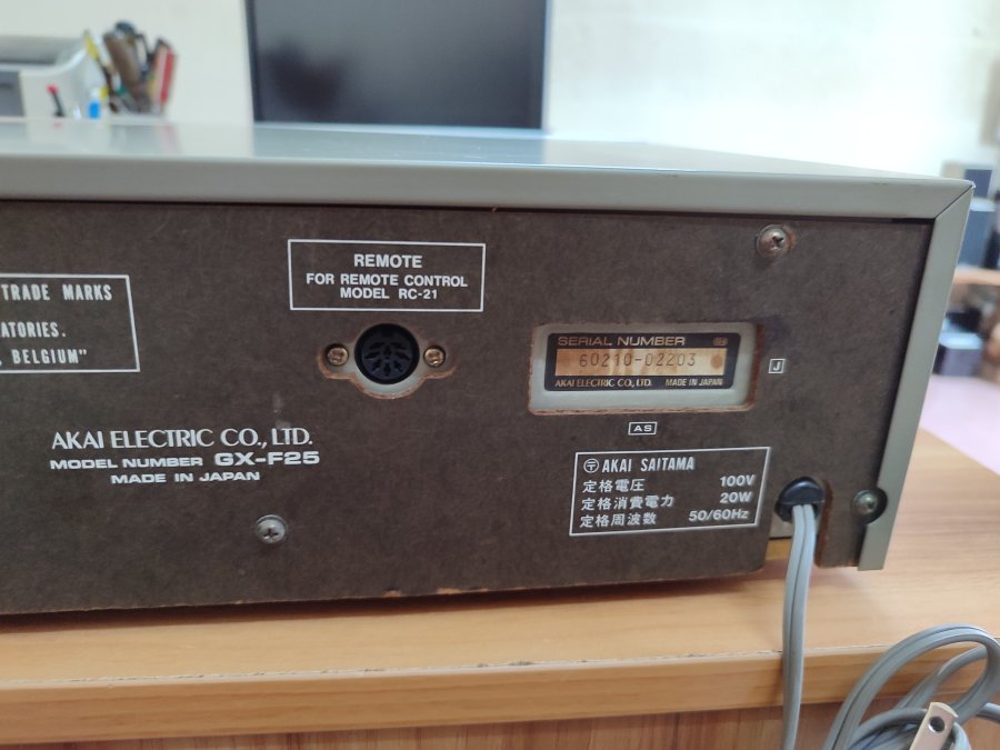Đầu deck Akai GX-F25 hàng Nhật dùng điện 100V, đầu còn rất mới, chất âm hay. Lỗi phần tua, chủ tua được 1 chiều, tua yếu, ae mua về xử lý phần bánh tì tua băng. Đầu chạy 2 motor, 1 để tua và 1 để play. Hàng Nhật về nguyên zin chưa qua sửa chữa.