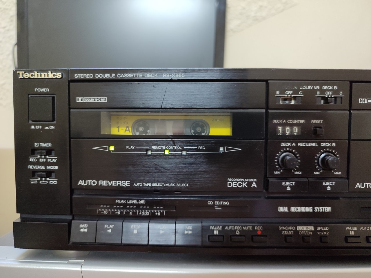 Đầu deck (cassette) Technics RS-X860, hàng Nhật dùng điện 100V, 2 cửa băng, thu phát tốt, tự động đảo chiều phát khi hết băng.