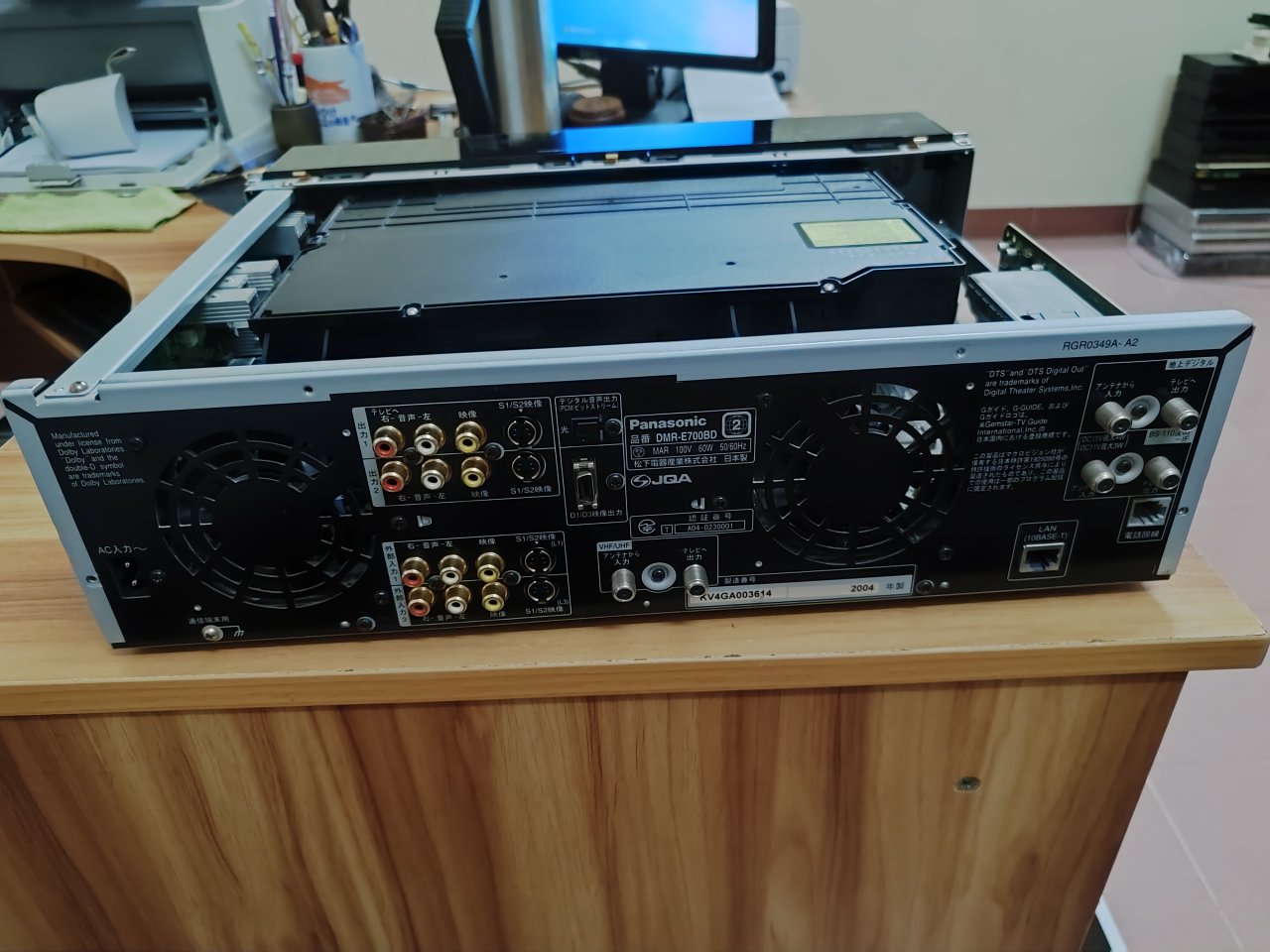 Đầu đĩa bluray Panasonic DMR-E700BD size khủng, dùng điện 100V, đầu còn rất mới, nắp lưng có xước nhẹ, mất nắp đậy phần dưới của mặt trước. Đầu trang bị 2 ổ đĩa, 2 mắt đọc riêng nhưng chỉ dùng chung 1 cửa ra vào đĩa. Linh kiện bên trong rất phức tạp.