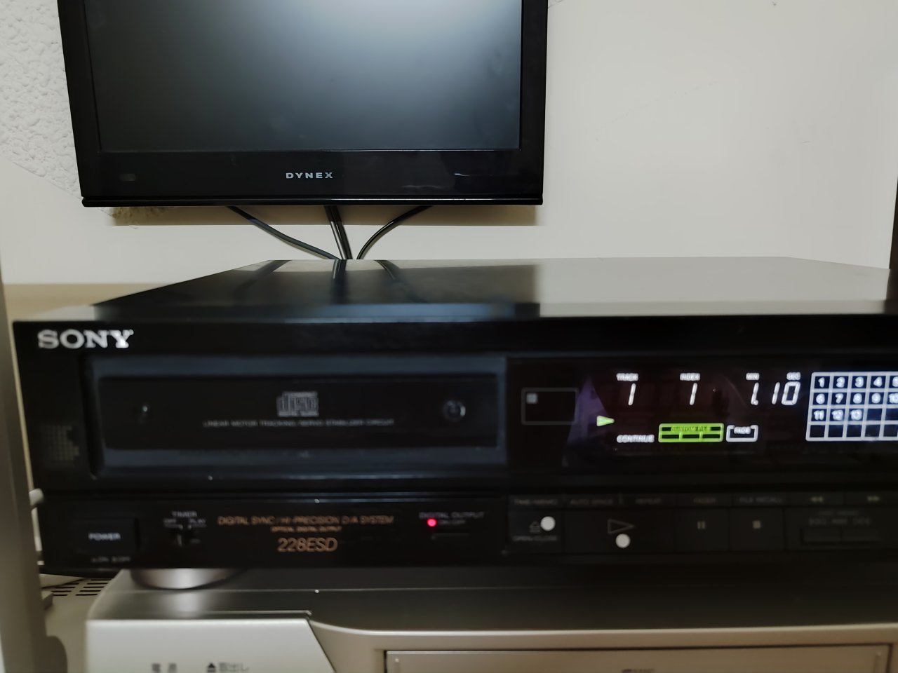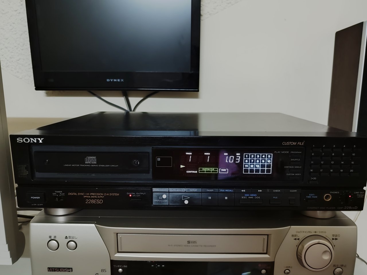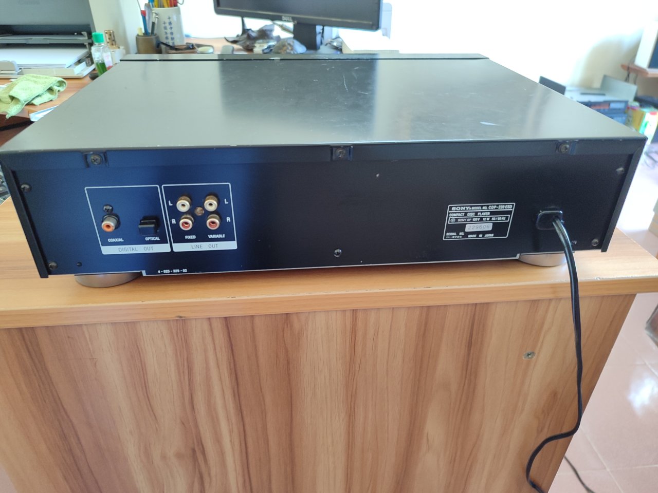 Đầu đĩa CD Sony CDP-228ESD hàng Nhật, dùng điện 100V, ngoại hình còn rất đẹp, nắp lưng có xước nhẹ. Đọc đĩa tốt, nhận đĩa và chuyển bài rất nhanh, chất âm rất hay.