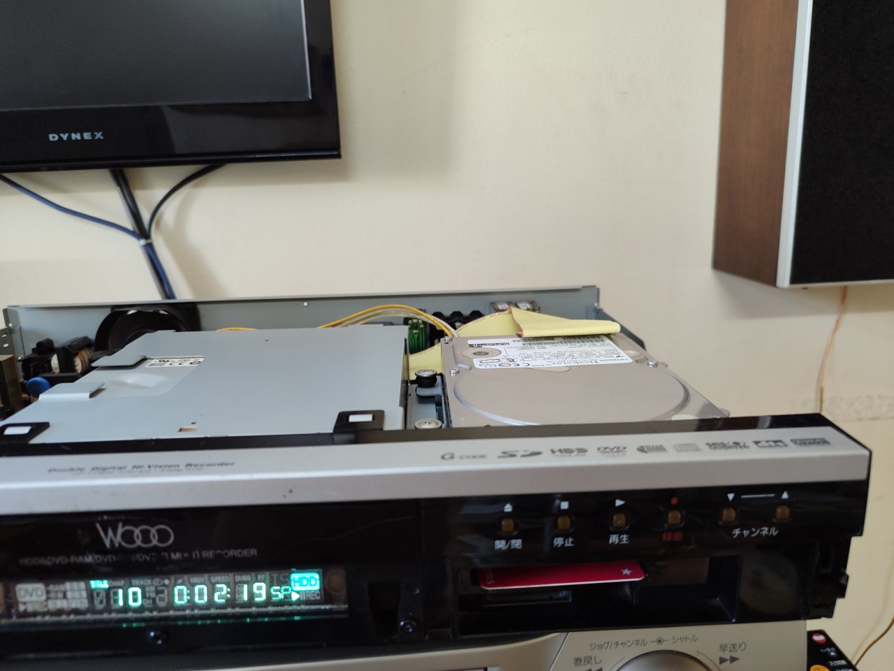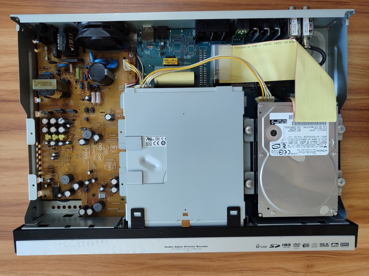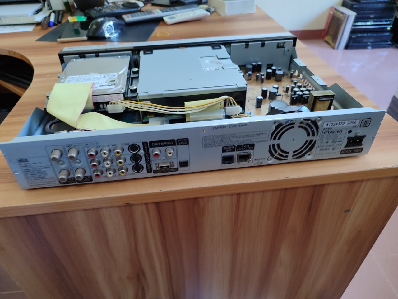 Đầu đĩa DVD Hitachi tích hợp ổ HDD 164GB, dùng điện 100V. Kèm remote và dây nguồn.
