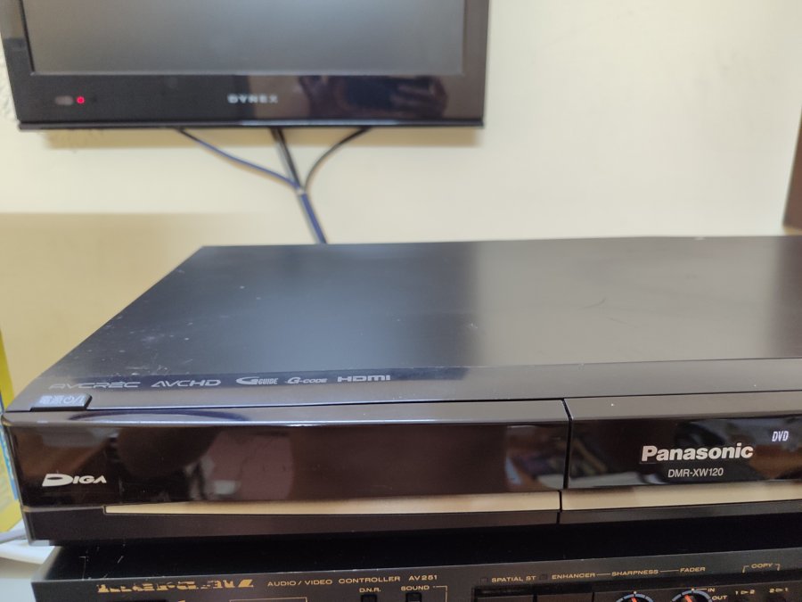 Đầu đĩa DVD Panasonic DMR-XW120 tích hợp ổ HDD 250GB, dùng điện 100V, đọc tốt đĩa DVD, CD, HDD thu phát tốt. Để lâu không dùng thử lại ngõ ra hình ảnh mất tín hiệu. Thanh lý cho ae về sửa hoặc để nghe CD qua cổng AV hoặc optical