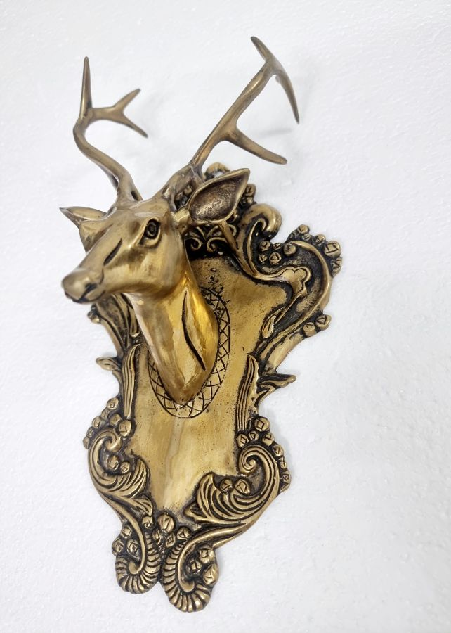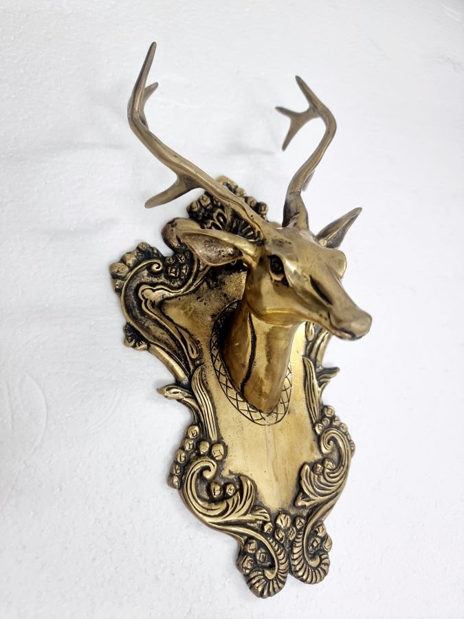 Đầu nai bằng đồng xưa, ngang 14 cm, cao 26 cm, treo trên tường để móc chìa khóa hay trang trí cũng rất đẹp, thích hợp sưu tầm. Cám ơn cả nhà đã xem tin