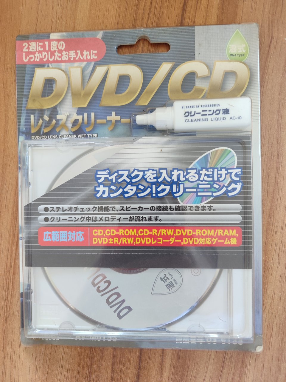Đĩa vệ sinh mắt đọc đầu đĩa DVD, CD hàng Nhật, chưa qua sử dụng, lọ nước rửa đi kèm còn gần đầy. Chức năng vệ sinh mắt đọc, bảo dưỡng cho mắt đọc có tuổi thọ cao hơn.