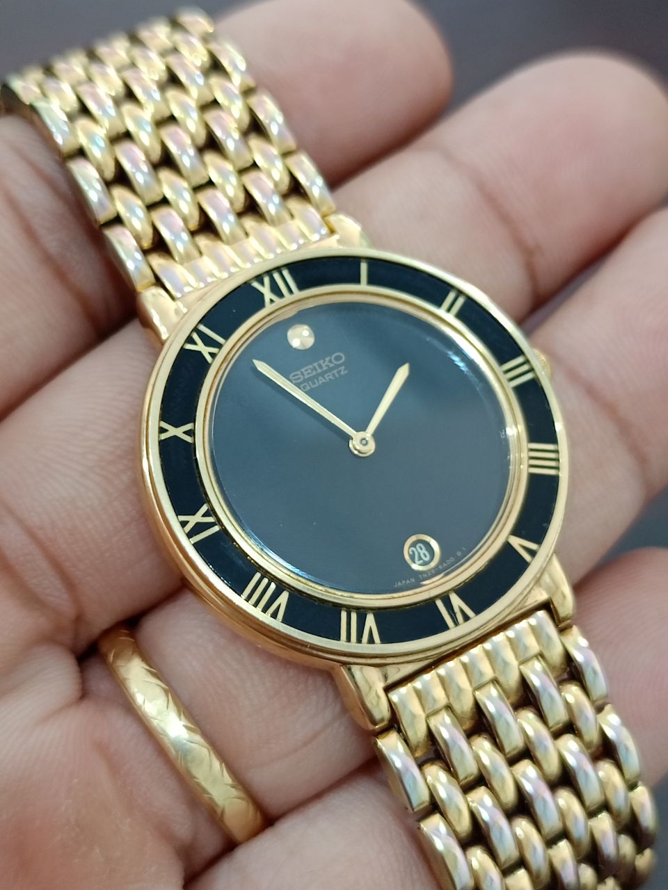 Đồng hồ nam SEIKO Máy pin hàng Japan. Size 34m. Vỏ bọc vàng, dây hạt gạo rất đẹp. Bác nào tay nhỏ đeo em này rất đẹp nhé. Còn chị em phụ nữ tay lớn đeo cũng đẹp luôn ạ.