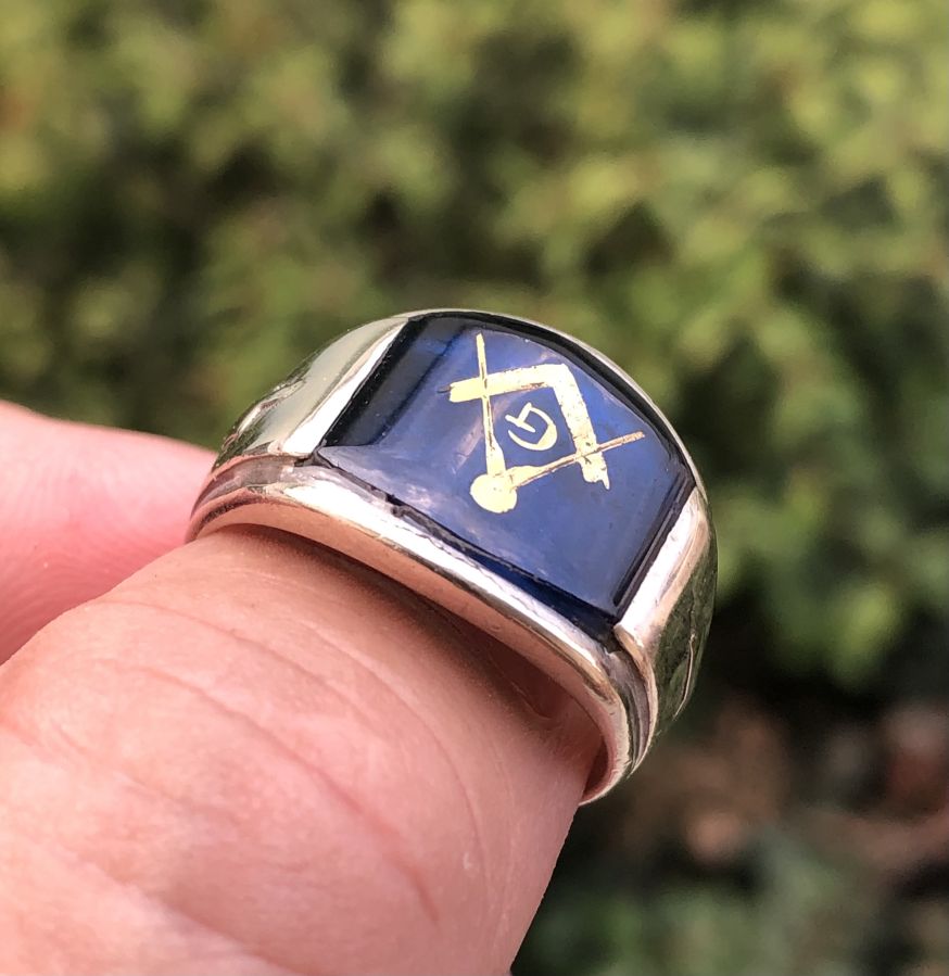 Giao lưu Nhẫn Mỹ Masonic Vàng trắng 10K. Nguyên zin rất đẹp, chính hãng USA sản xuất. Chi tiết còn khá sắc nét, Mặt đá Xanh đậm đính Logo Masonic đẹp lộng lẫy, sang trọng, sáng tài.