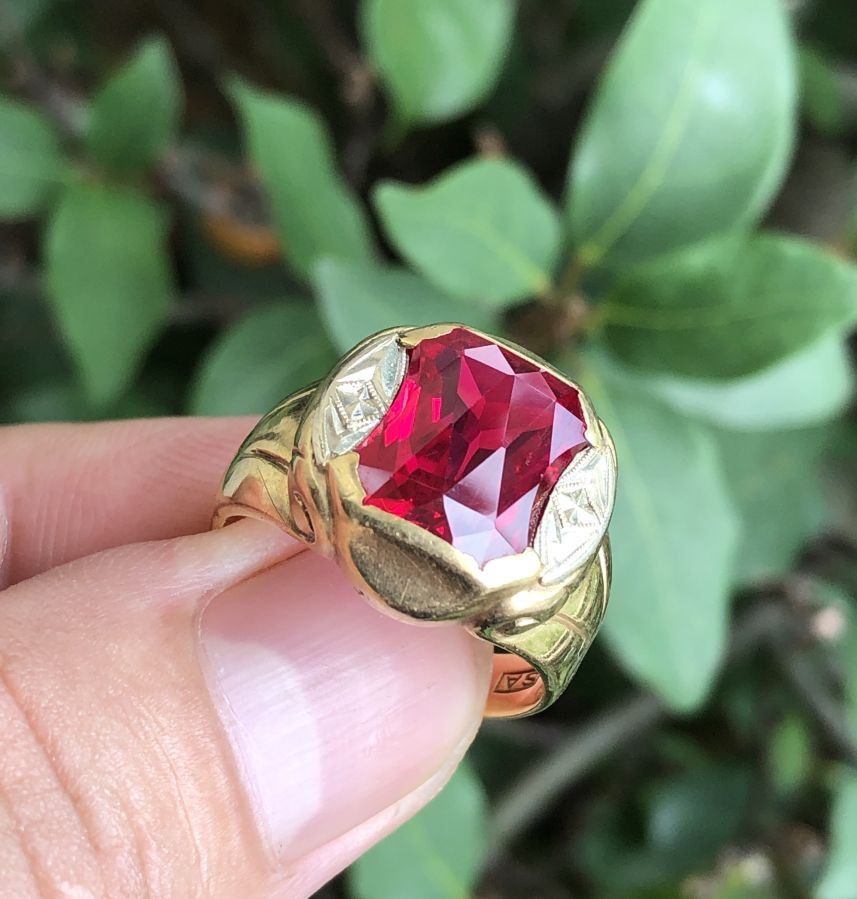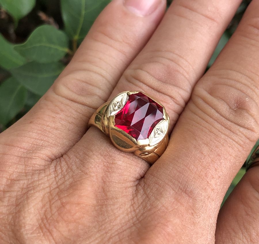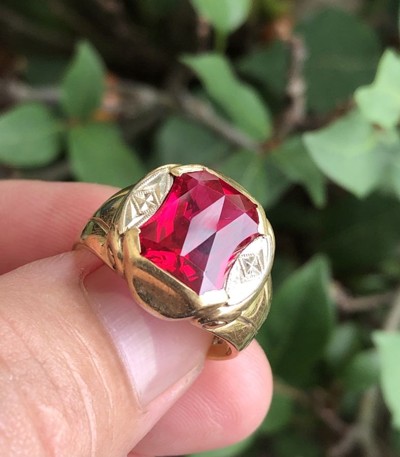 Giao lưu Nhẫn Mỹ Vàng 10K. Nguyên zin rất đẹp, chính hãng USA sản xuất. Chi tiết còn khá sắc nét, Mặt đính Viên đá đỏ huyết giác cạnh Zin khá đẹp, lộng lẫy, sang trọng, sáng tài.
