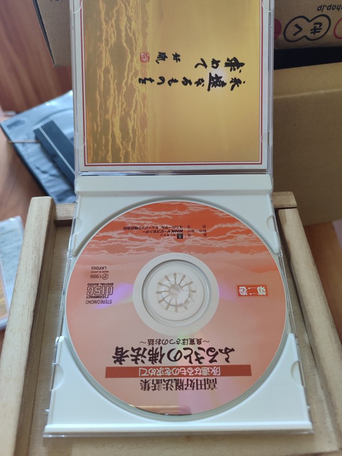 Hộp gỗ đựng đĩa CD kèm 10 đĩa, có 9 đĩa chưa bóc seal