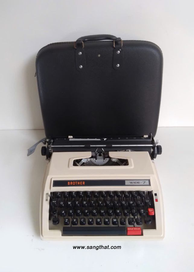 MDC22 Máy đánh chữ màu trắng cổ điển hàng chục năm tuổi Brother. Máy đẹp độ mới 90%. Máy hoạt động tốt - cần tra thêm ít dầu mỡ cho trơn chu thêm. Ngang 37cm cao 10cm sâu 32 cm (không tính hộp). Chỉ bán dạng decor trang trí 00k.