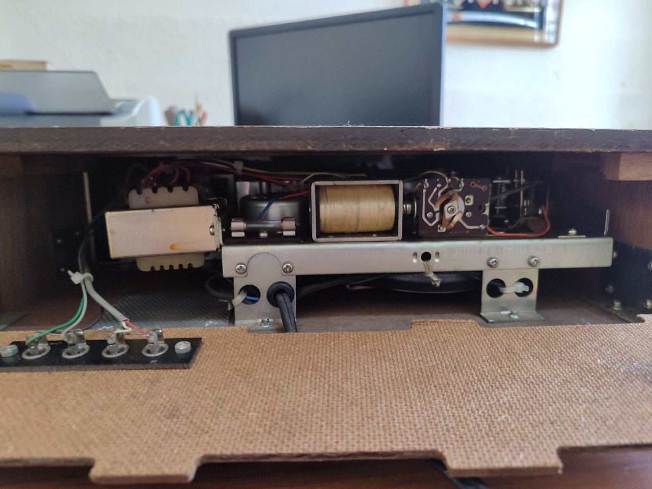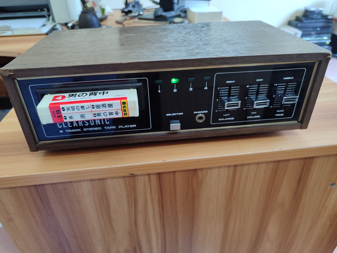Máy hát băng 8 track hàng Nhật, dùng điện 100V, loại tích hợp công suất, chỉ cần đấu loa vào hát không cần qua amply hát bình thường nhưng tiếng bị rè, thanh lý cho ae thợ về dọn lại chơi, máy còn rất mới, hành bãi về chưa qua sửa chữa.