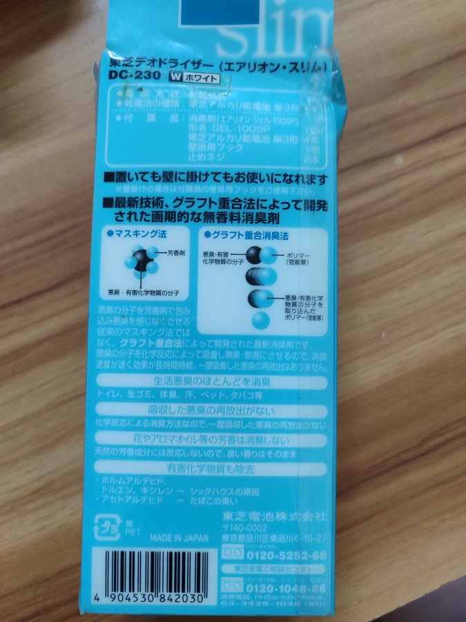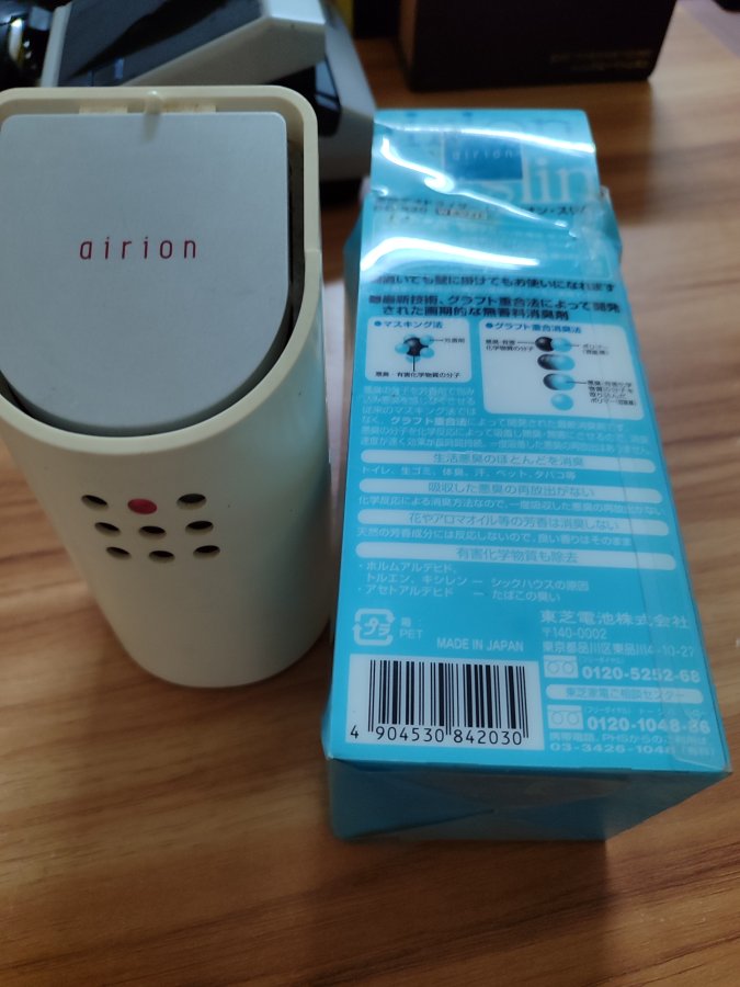 Máy khử mùi Toshiba sản xuất tại Nhật, dùng 4 pin 2A. Thích hợp dùng cho xe oto hoặc phòng nhỏ, có thể đặt trên bàn hoặc bắt lên tường