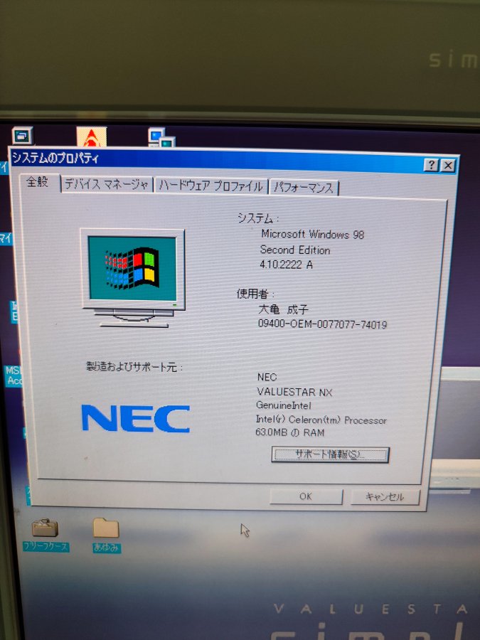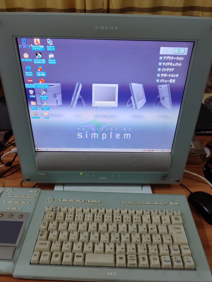 Máy tính đời cổ Nec, còn nguyên thùng kèm rất nhiều phụ kiện, bàn phím và chuột không dây, bàn phím dùng tốt, chuột bị hỏng (có thể sử dụng chuột dây), có rất nhiều sách hướng dẫn và đĩa cài đặt. Màn hình Nec rất đẹp, riêng màn hình nặng 6.5kg. Máy vẫn dùng tốt, có ổ CD dùng nghe nhạc, và có cổng ra giắc 3.5 để kết nối với amply.