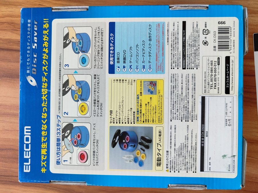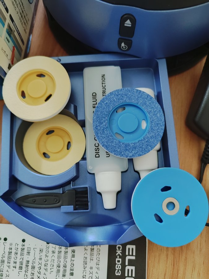 Máy vệ sinh, sửa lỗi đĩa CD, DVD Elecom còn rất mới, gần nhứ chưa qua sử dụng, chai nước vệ sinh còn nhiều, kèm nhiều phụ kiện dự phòng. Máy dùng adapter điện vào 100-240V.