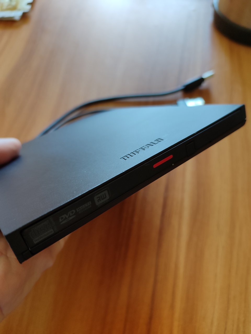 Ổ DVD Buffalo kết nối máy tính qua cổng USB, lấy nguồn trực tiếp từ máy tính hoặc adapter, đọc đĩa tốt.