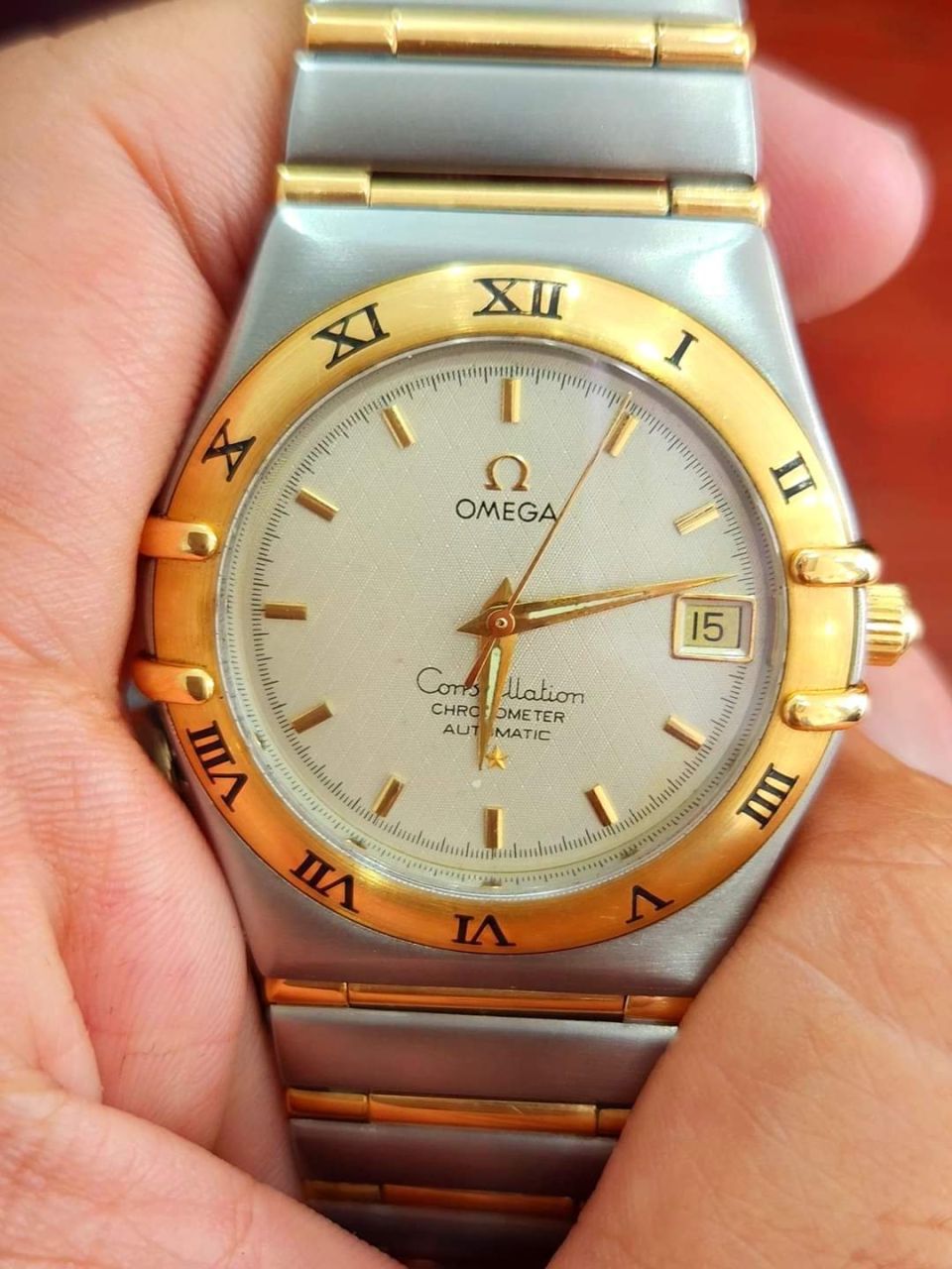 Đồng hồ nam OMEGA Constelltion Máy Automatic 1120 Size 35.5mm. Dial zin, kim cọc zin đẹp. Toàn thân ss demi vàng khối 18k. Zin nguyên comple rất đẹp. Đáng để các Bác sưu tâm chơi nhé.