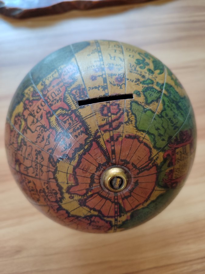 Bỏ ống heo hình quả địa cầu, hàng Italy, còn rất mới, bị xước nhẹ 1 chỗ