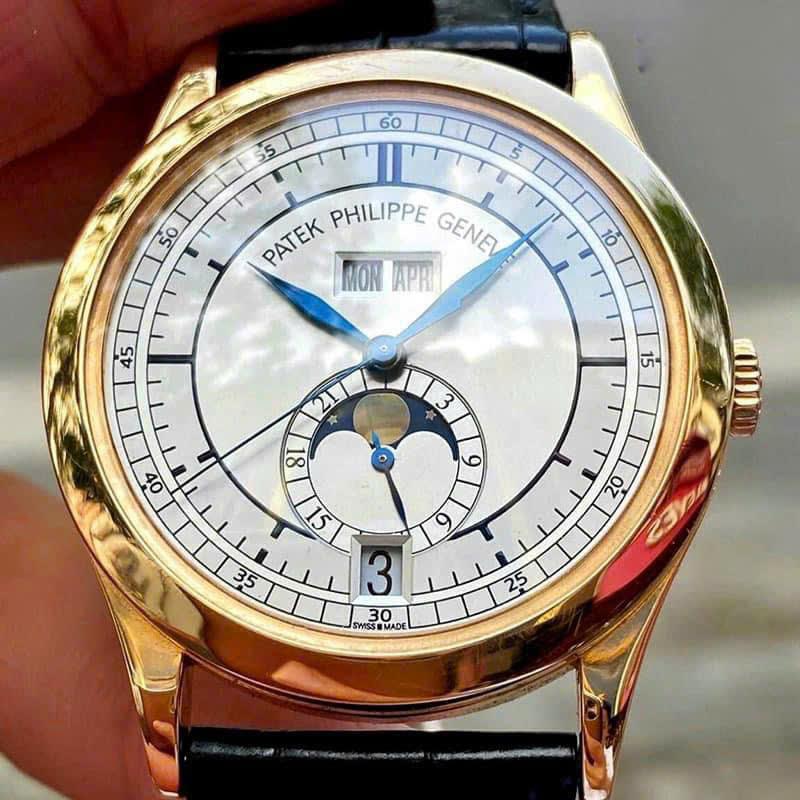 • Mặt đồng hồ: trắng, chi tiết tinh xảo. Chức năng: Giờ, phút, giây, lịch thường niên (hiển thị đủ thứ, ngày, tháng), kim 24 giờ, lịch tuần trăng.