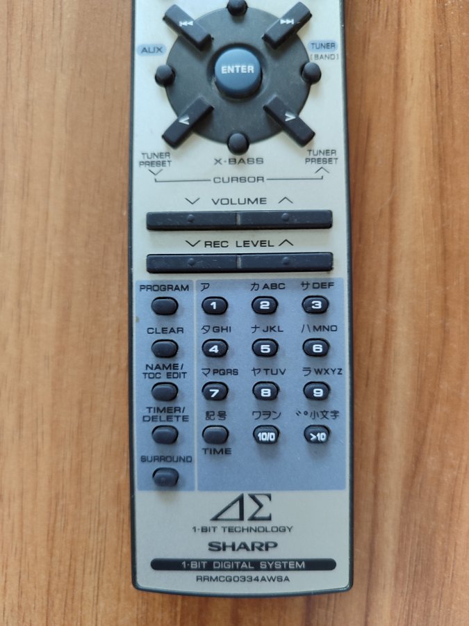 Remote bộ dàn âm thanh Sharp, còn rất mới, đã kiểm tra, tất cả các nút đều hoạt động tốt, chân pin sáng đẹp.