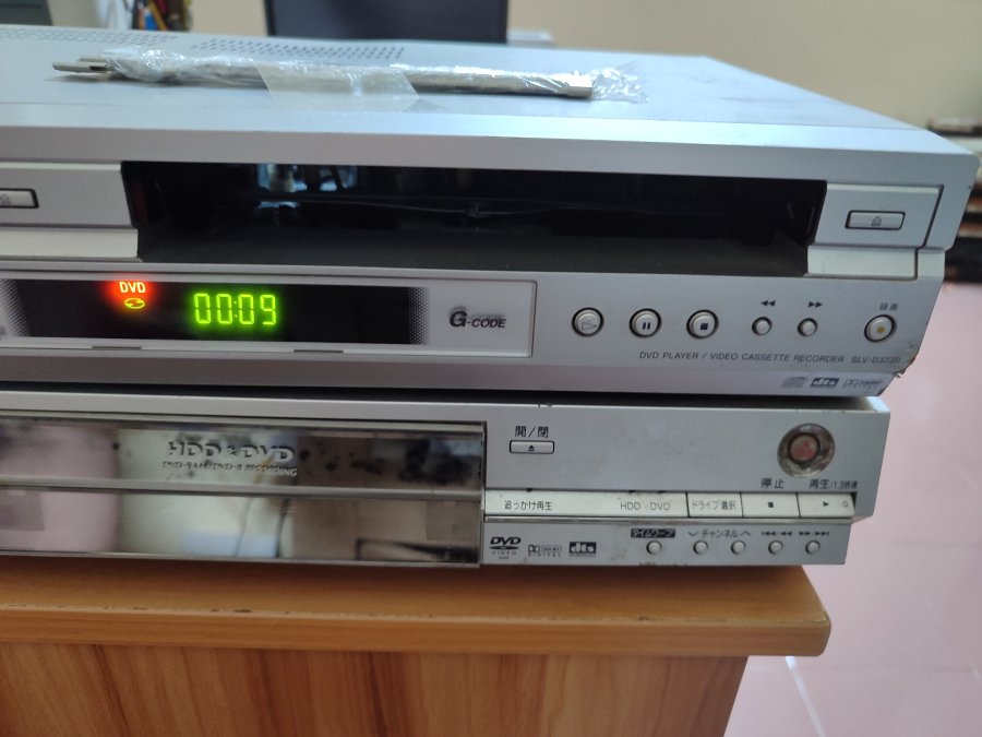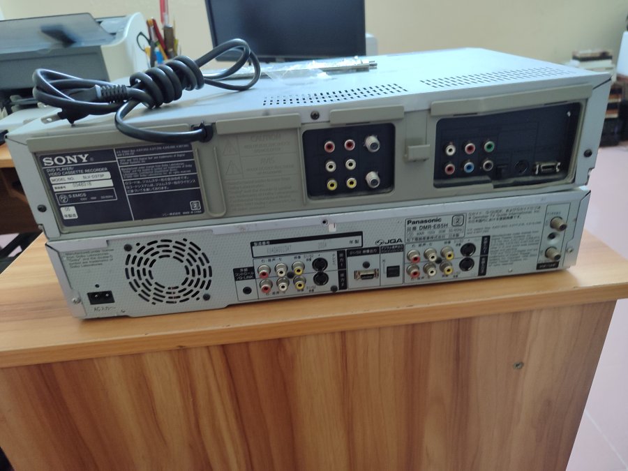Đầu DVD + VHS Sony: DVD hoạt động tốt, VHS đang chạy bị lỗi, cho băng vào chạy k thu băng, làm rối băng, bị gãy chốt nắp của băng, mất nắp cửa đĩa