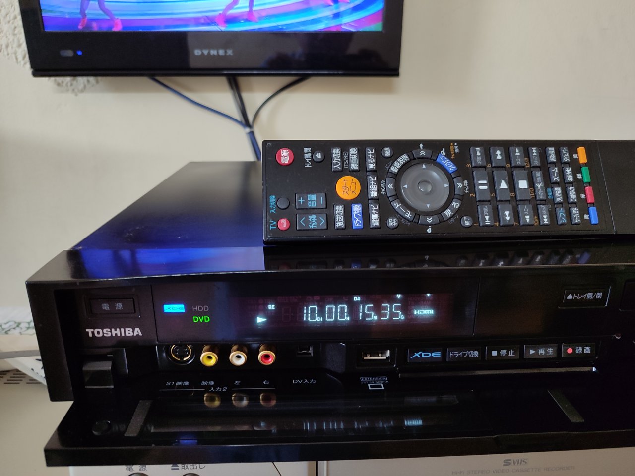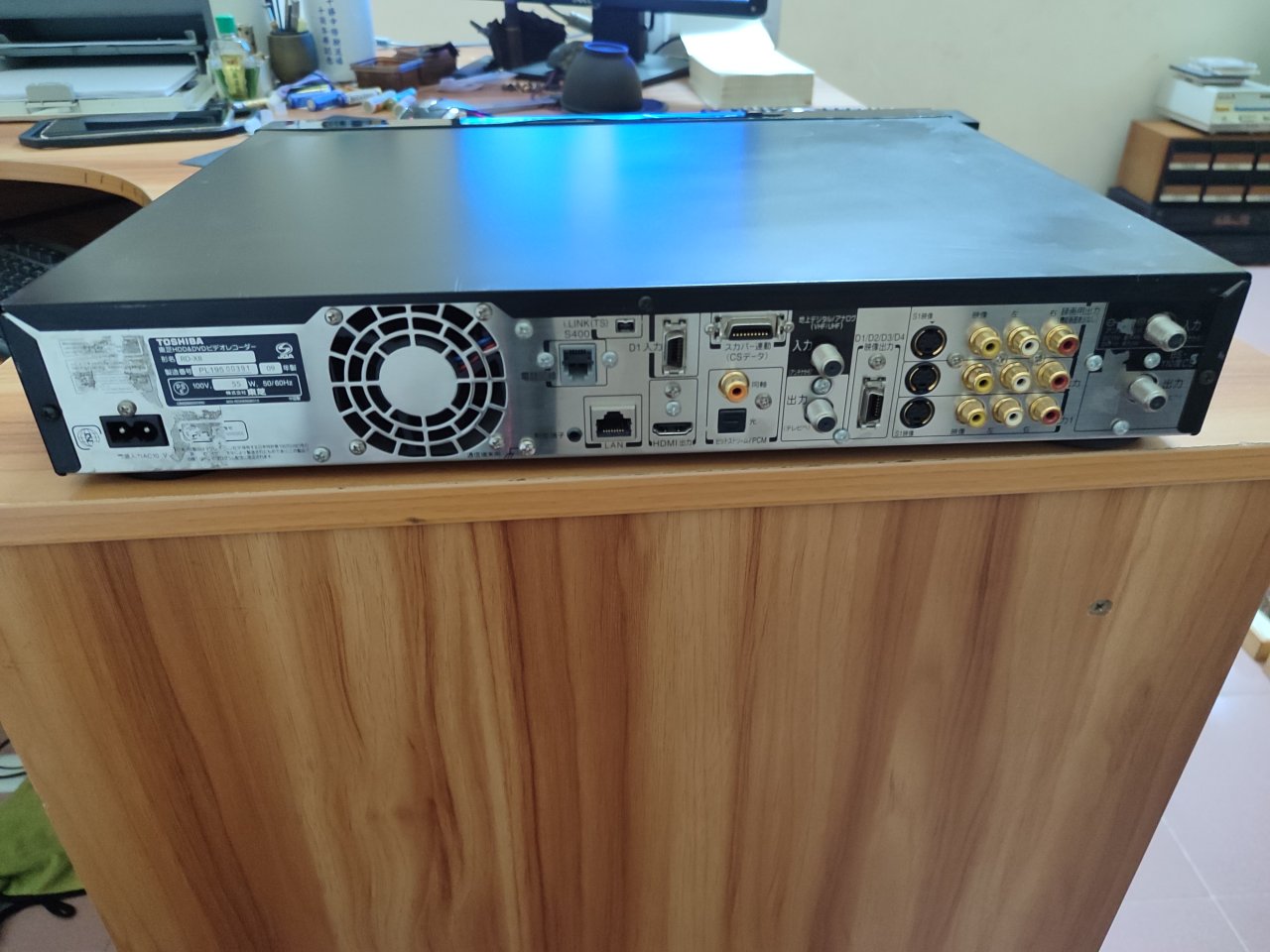 Đầu đĩa DVD Toshiba tích hợp ổ HDD 1TB, dùng điện 100V, ngoại hình còn rất mới, rất nhiều cổng kết nối, tất cả các giắc đều được mạ vàng.