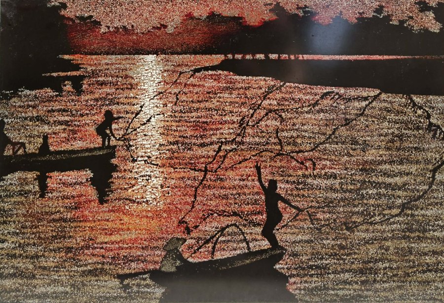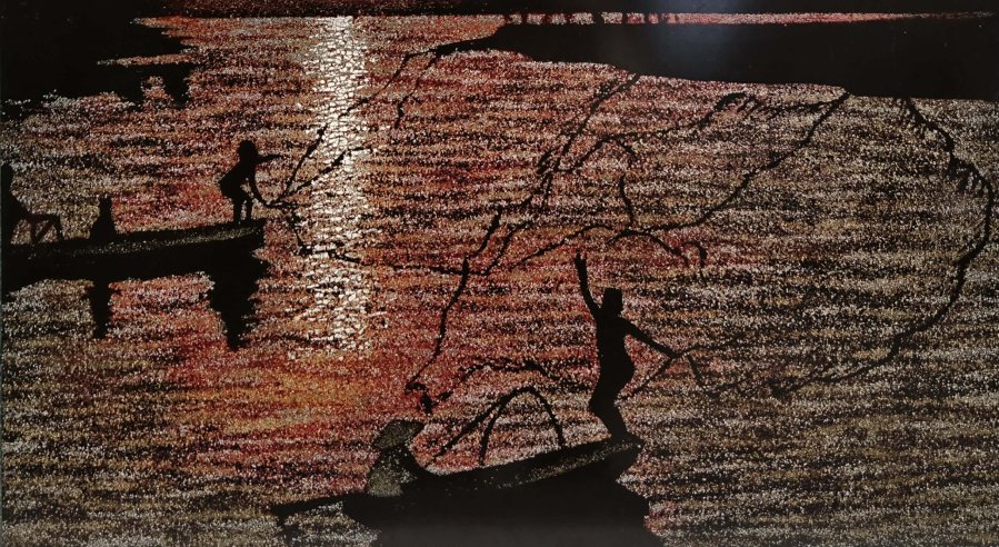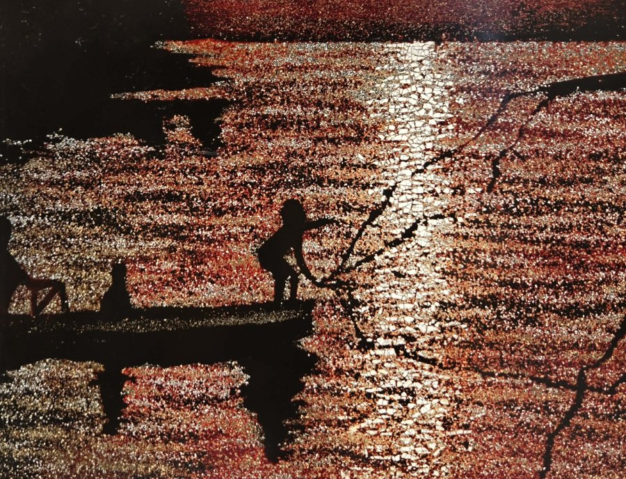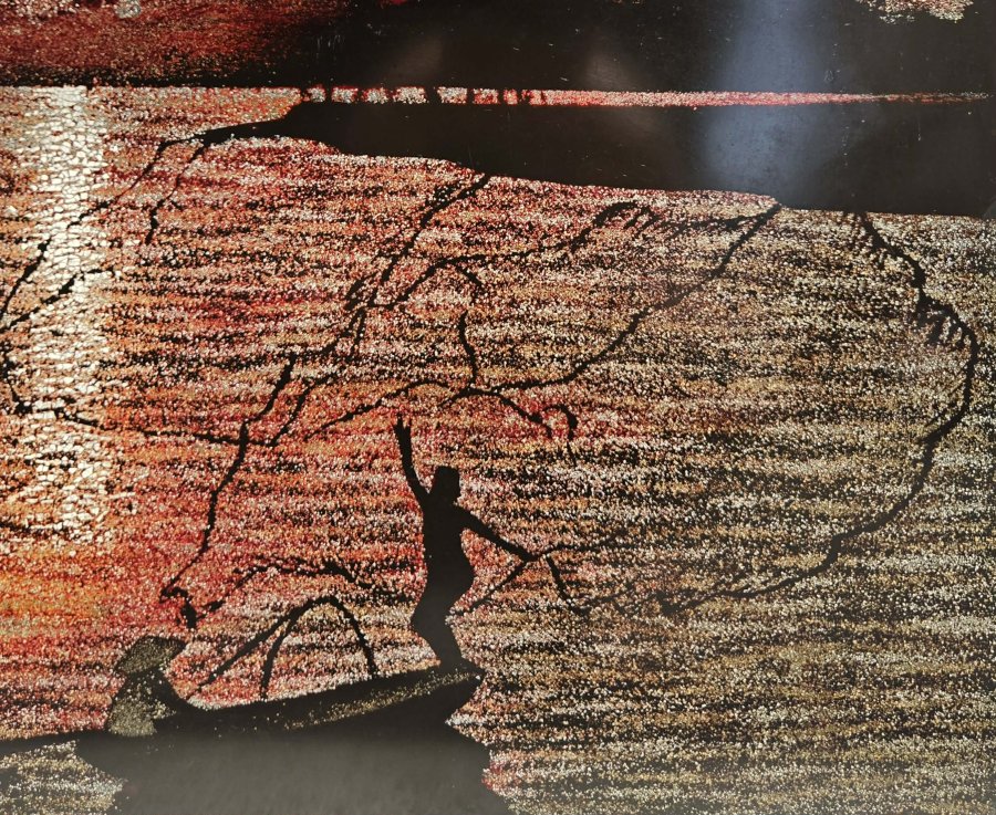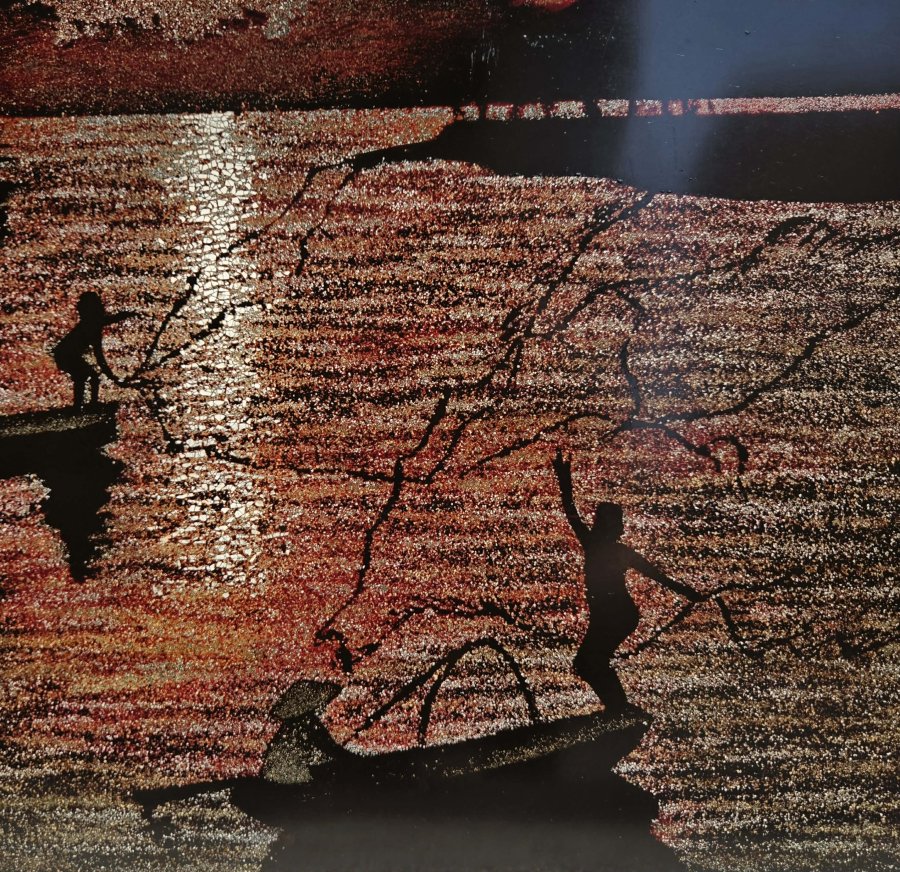 Tranh sơn mài khảm vỏ trứng.