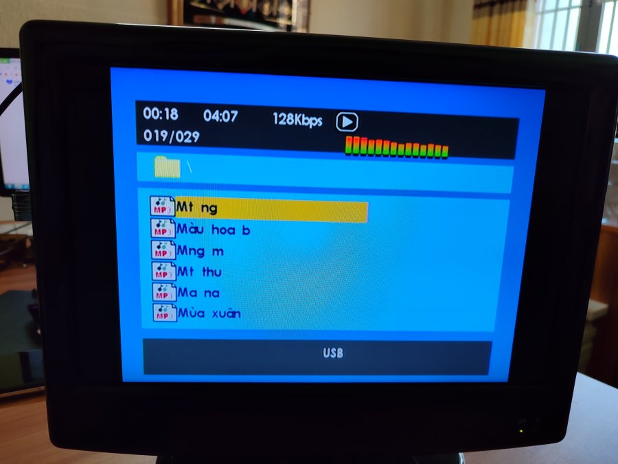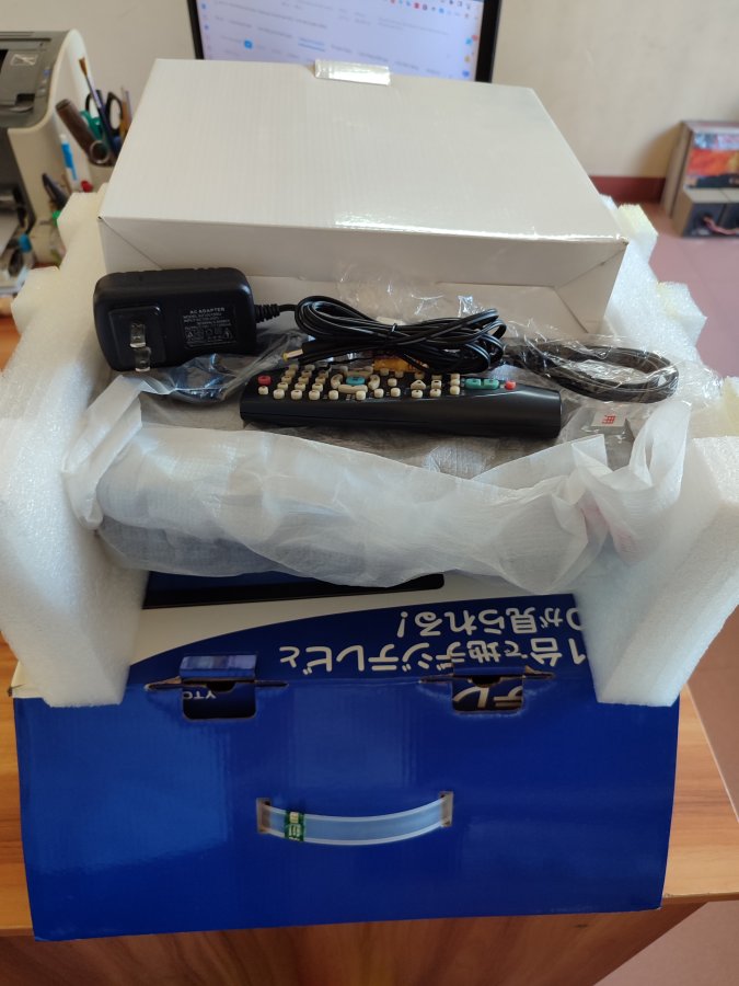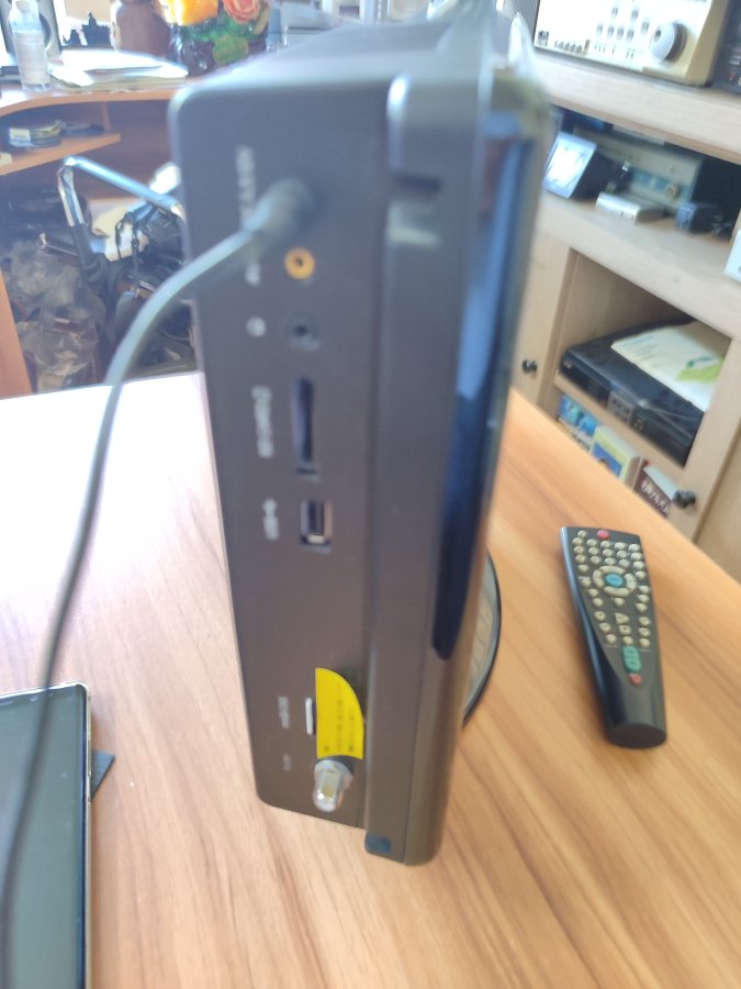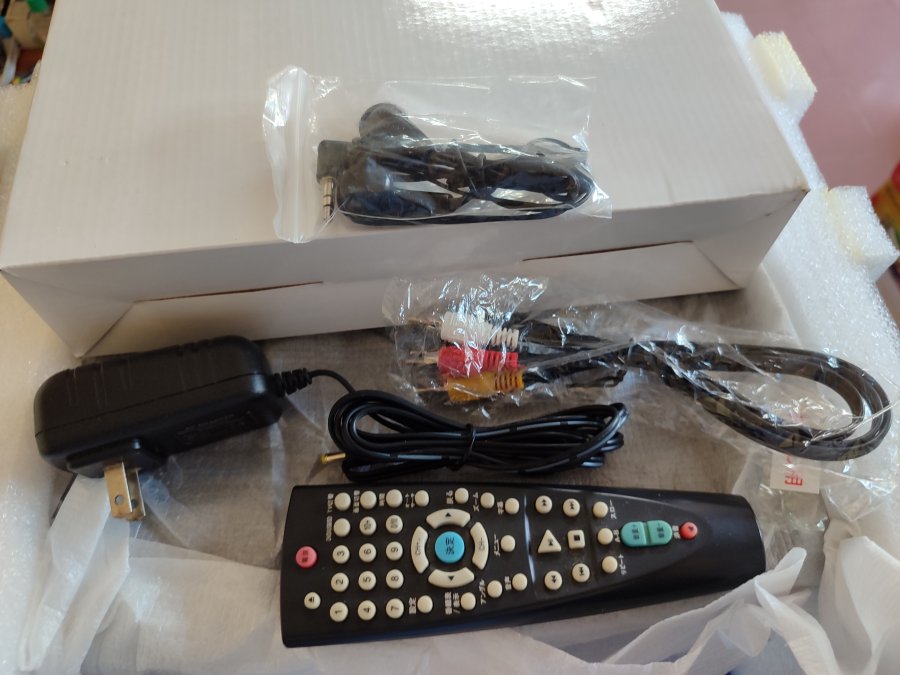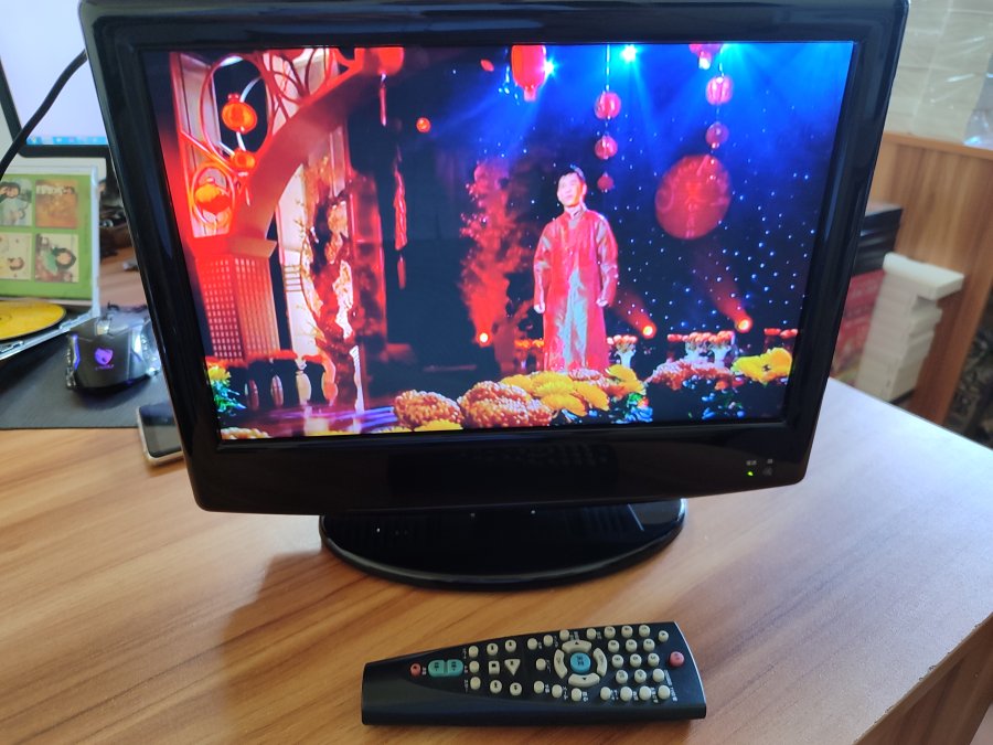 TV tích hợp DVD 13.3 inch, hàng còn nguyên hộp kèm remote và phụ kiện. Đọc tốt đĩa DVD, CD, VCD, có cổng USB và SD để nghe nhạc và xem hình, ngõ ra AV giắc 3.5 để xuất âm thanh, hình ảnh ra TV lớn hơn. TV dùng adapter điện vào 100-240V.