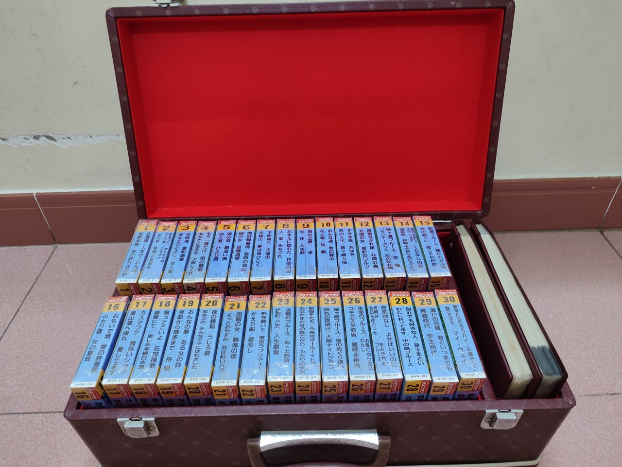 Vali băng 8 track 30 cuốn đủ bộ còn rất đẹp, hàng hiếm cho anh em sưu tầm, bên trong vali lót nhung, viền khung nhôm rất chắc chắn, kích thước: 45.5 x 26 x 16.5