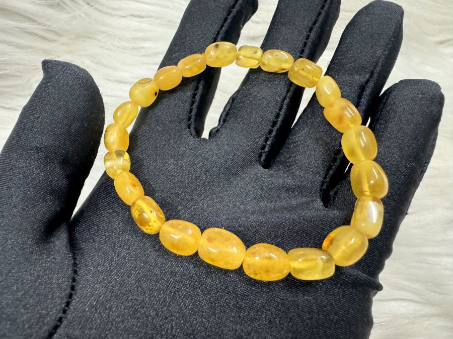 Vòng Tay Hổ Phách đá thô chưa qua xử lý (Hổ Phách thật nổi trên bề mặt nước muối khi đã trung hòa )