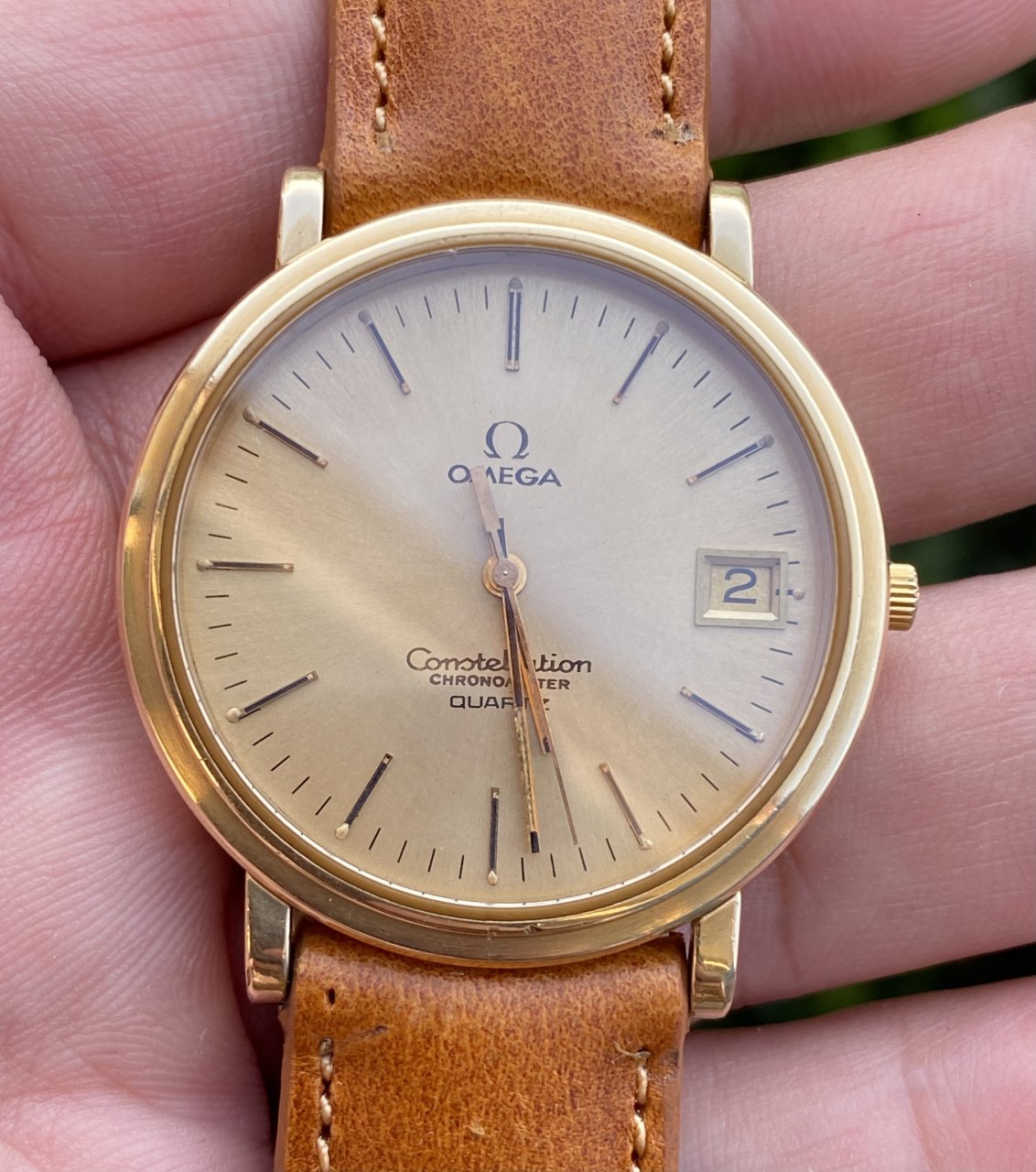 Giao lưu Đồng hồ Omega constenlation quartz swiss made. Nguyên zin rất mới đẹp long lanh chính hãng thuỵ sỹ sản xuất.