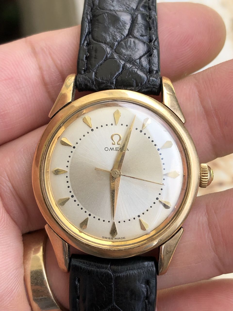 Giao lưu Đồng hồ Omega swiss made. Nguyên zin rất mới đẹp long lanh chính hãng thuỵ sỹ sản xuất. Model Siêu mỏng sản xuất 1958, độc hiếm, đáng chơi và sưu tầm. Chưa hề qua xử lý hay đánh bóng.
