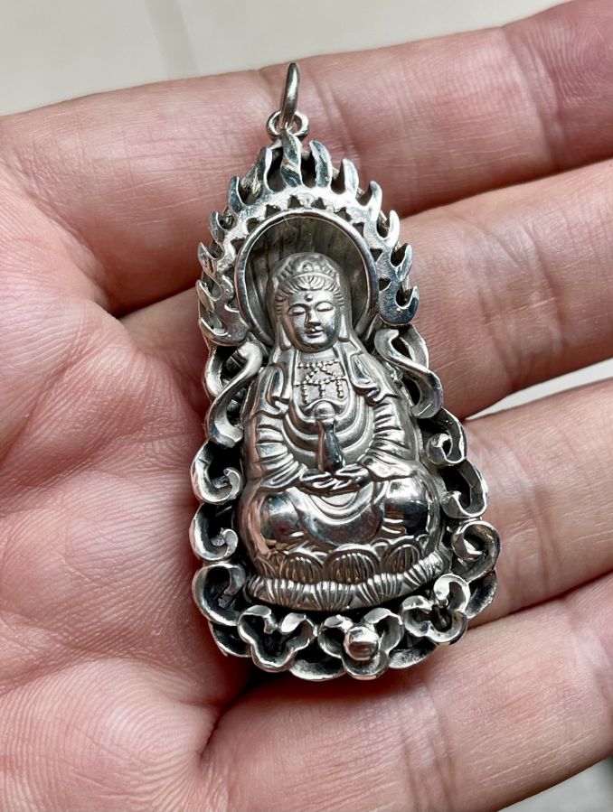 Mẹ Quan Âm bằng bạc rất đẹp nét , thần thái Cao 5,5cm . Ngang 2,6cm