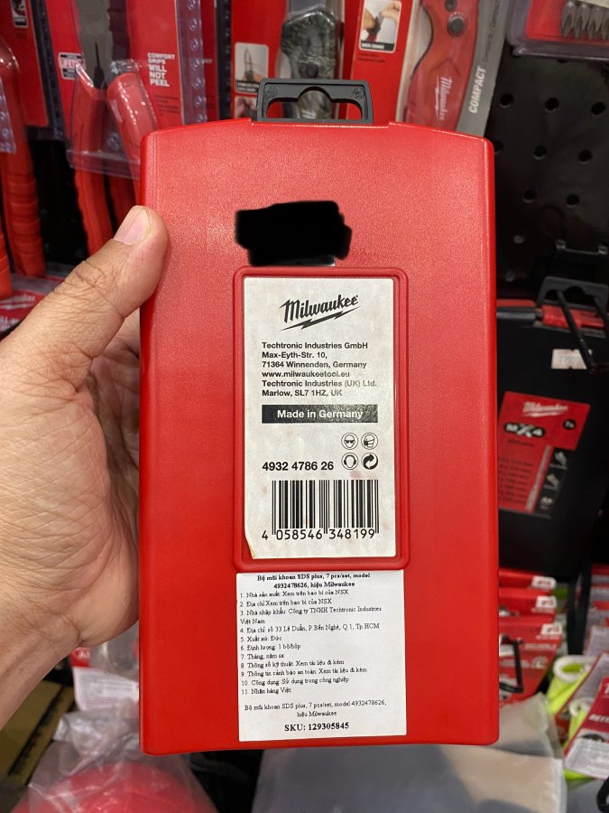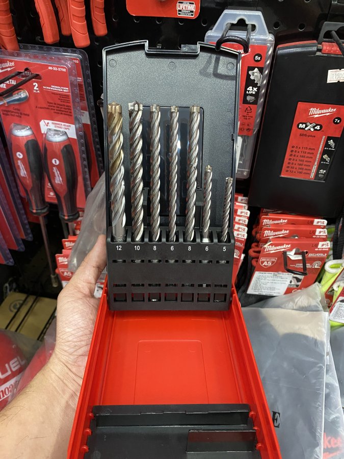 Dạ, Bộ mũi khoan bê tông SDS Plus Milwaukee 4932478626 Sx tại Đức (Made in Germany)Gồm 07 mũi1,300,000
