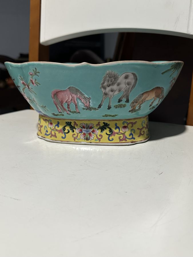 Bát chân cao..vẽ tích bát mã Tuấn đồ.. tuyệt hiếm.. không có cái thứ 2 Hàng chuẩn cổ vật..đồ nhà thanh hiệu đề Đại Thanh càn Long niên chế.. bao hàng trên 300 năm . Lành nguyên.Dài 25,5cm, ngang 19,5cm, cao 10,7cm. Giá 12.. triệu đồng bao gởi.. tiền ít thì không có thịt nhiều...xin đừng trả giá... và cũng không cần thiết phải gấp kkkk 🤣🤣🤣🤣🤣🤣