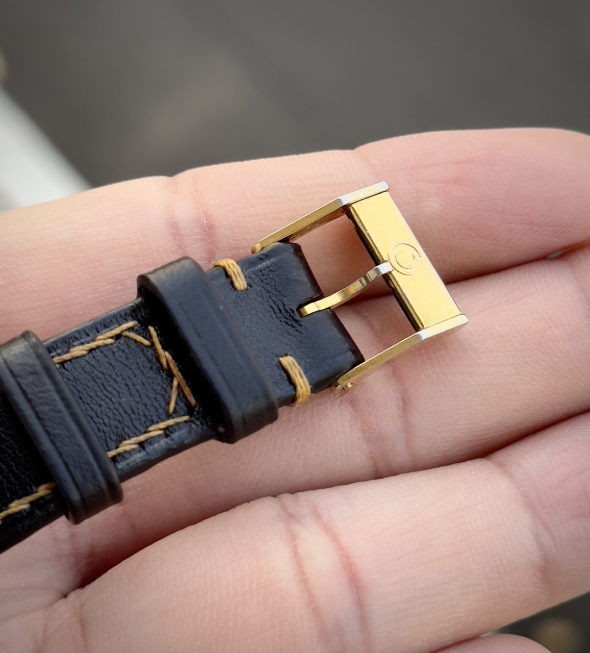 🔸Demi 14k mới cứng không tì vết,niềng đúc,4 chân cẩn vàng 14k.Mặt dial zin sớ sáng rực rỡ, phên sớ lụa mượt mà,Kim cọc vàng bén sáng cài đá đen có dạ quang vát cạnh sáng từng góc nghiêng.Núm zin vàng logo hãng,Dây da nhập ngoại ôm tay,khoá zin bọc vàng theo đồng hồ
