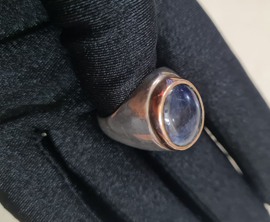 🌟Nhẫn bạc ngoại đính đá saphia xanh thiên nhiên demi vàng hồng 8k.