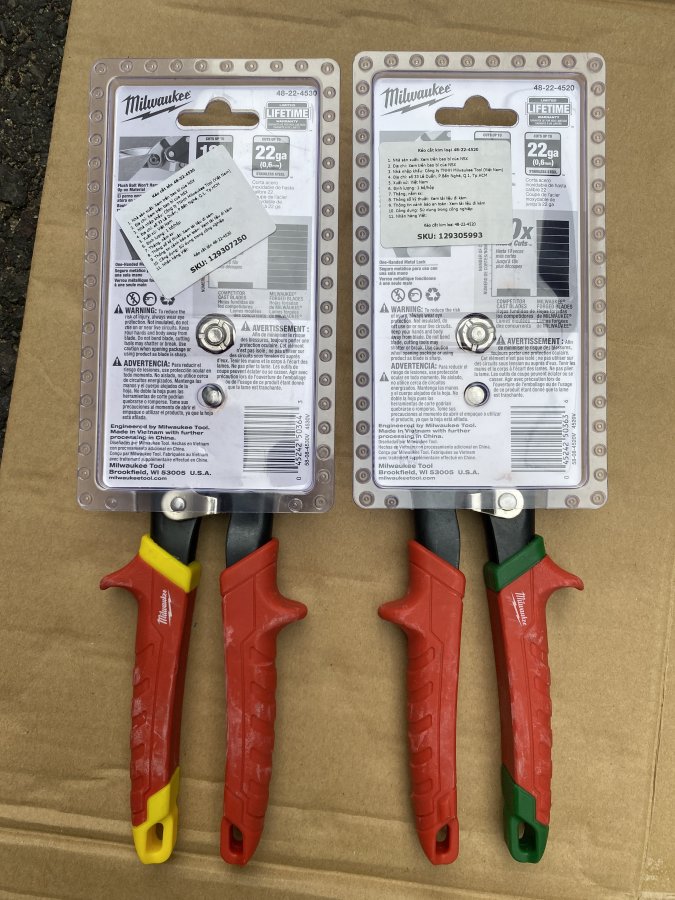 Dạ, Kéo cắt kim loại MilwaukeeMã 48-22-4520 - Cắt thẳng, và bo sang phải: 400kMã 48-22-4530 - Cắt thẳng: 450k