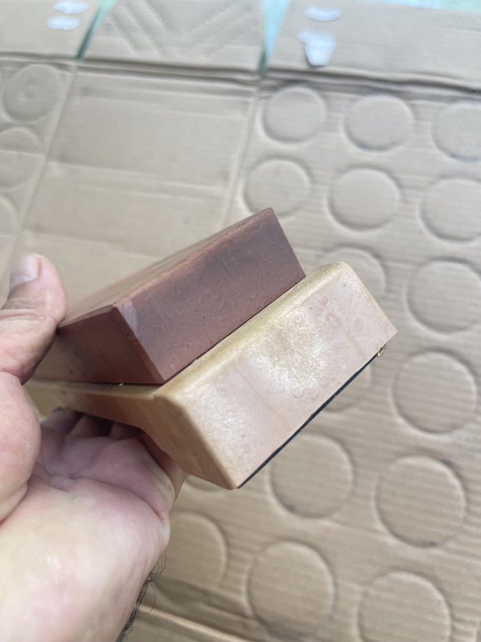 Sản phẩm dùng lướt còn lành nguyên rất đẹp, mặt phẳng vẫn nguyên xi không lồi lõm, có đế chống trượt khi sử dụng, độ mịn #1000 vừa dùng cho gia đình. Cám ơn đã xem tin.