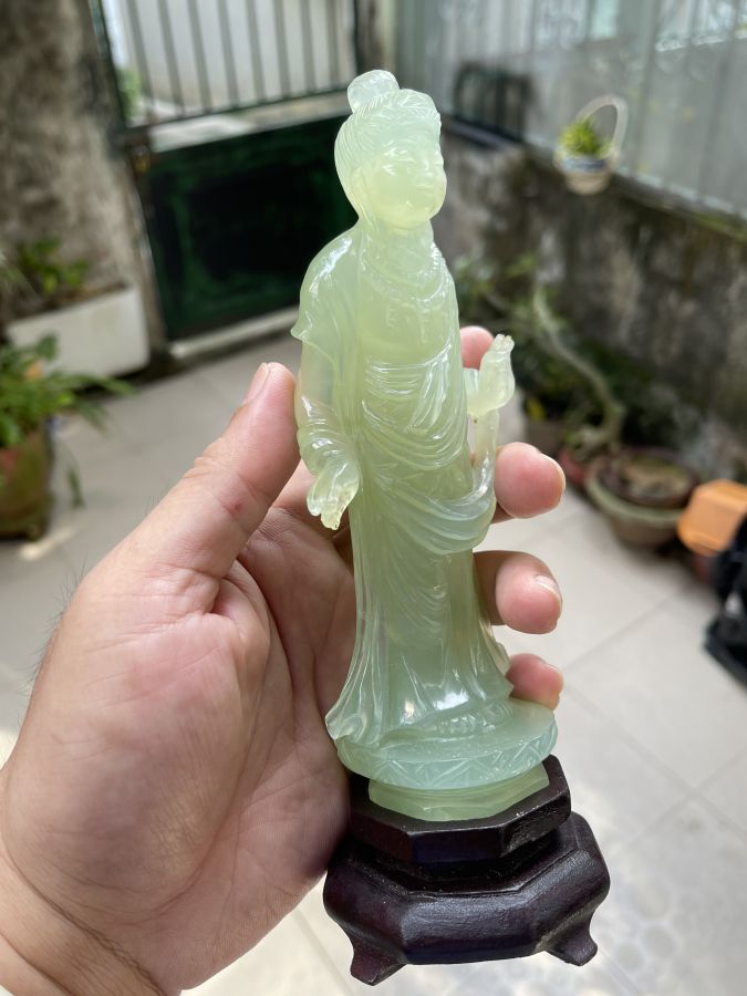 Mẹ Quan Âm đá ngọc thiên nhiên nguyên khối chạm rất đẹp, lành Cao 22cm lh 0938968896 zalo or call
