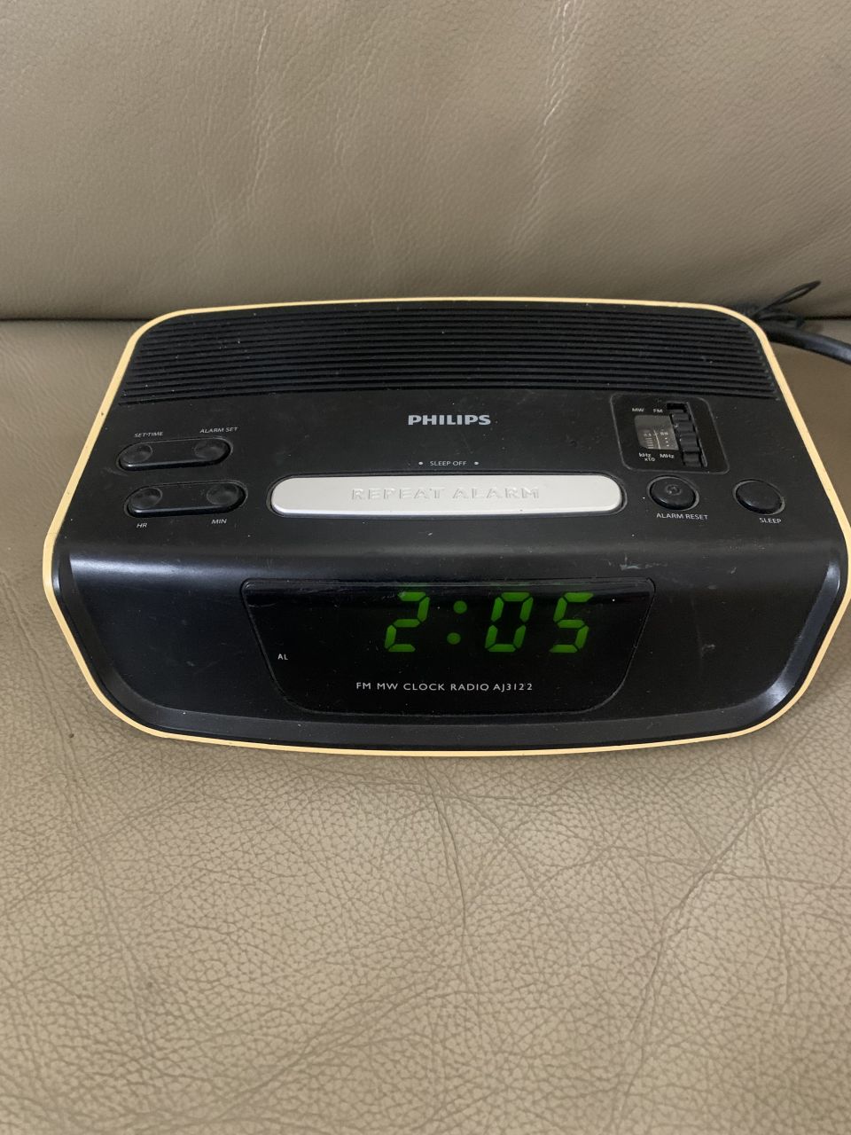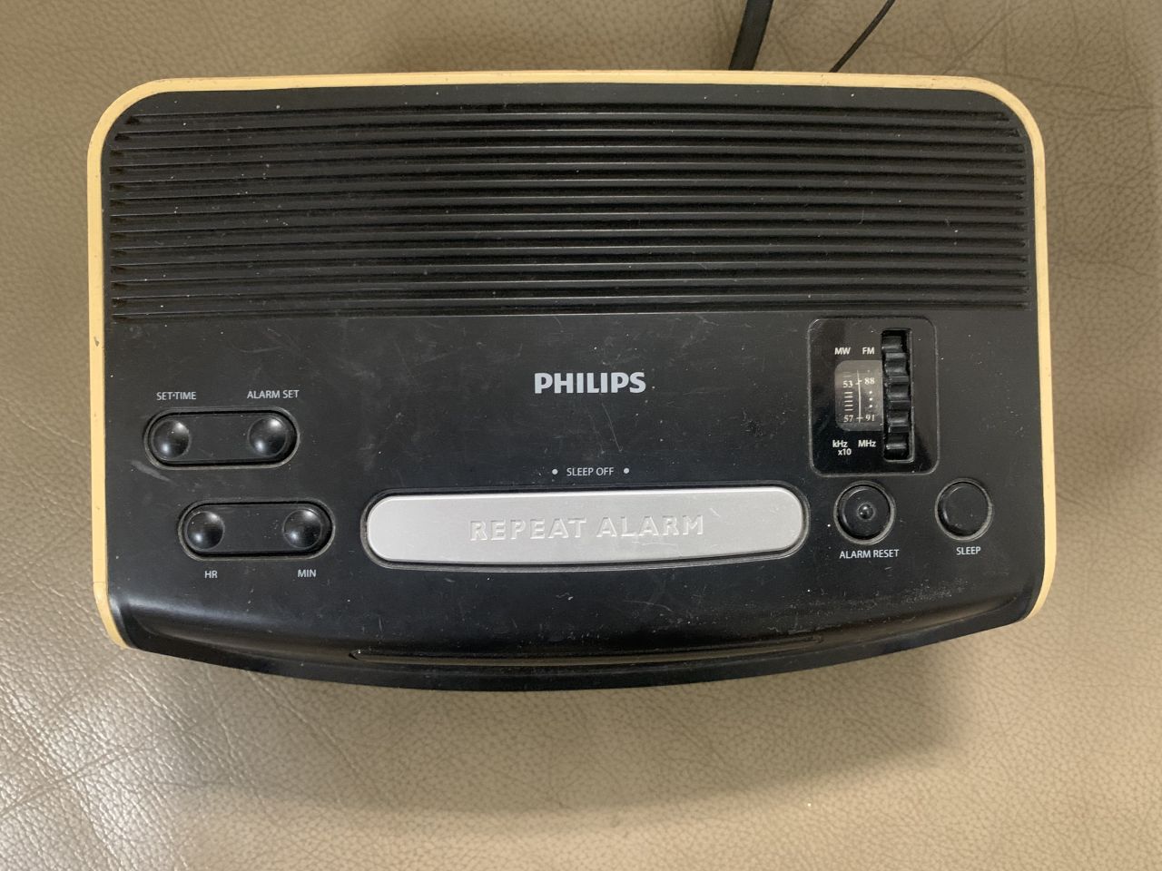 Radio có đồng hồ và báo thức hai band AM FM 108 hiệu Philips dang sử dụng tốt