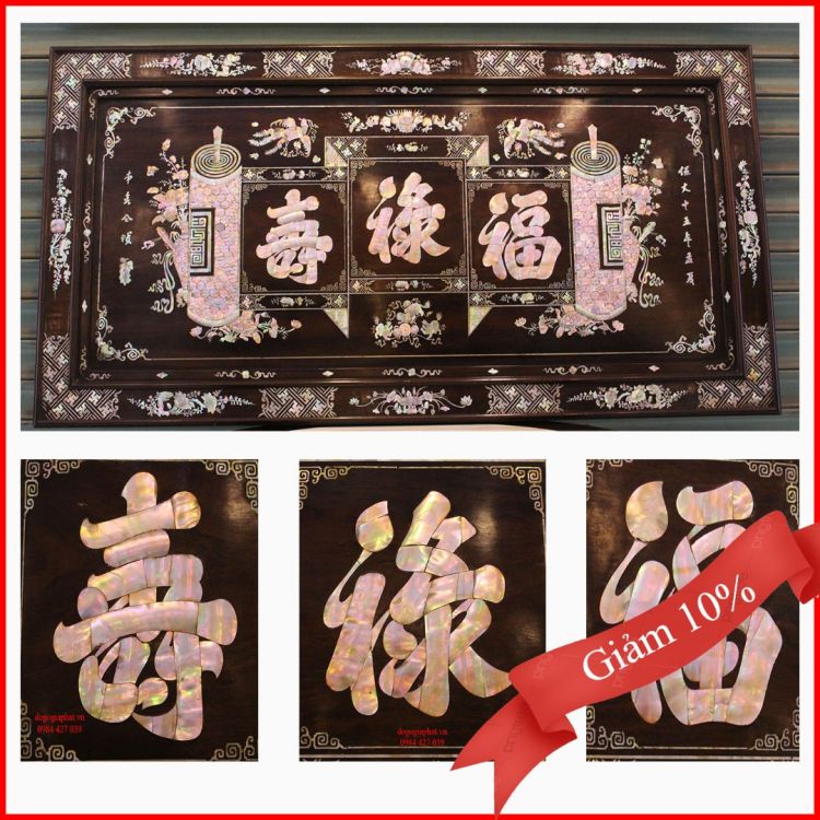 Xin giao lưu với các bác gần xa bức đại tự cẩn ốc tích PHÚC – LỘC – THỌ mang ý nghĩa :